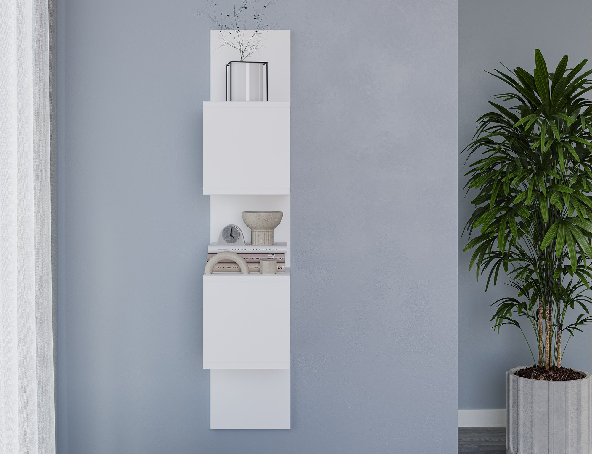 Polička Sunpedo je moderní a funkční prvek interiéru navržený s ohledem na eleganci a jednoduchost. S rozměry 25 cm na šířku, 25 cm do hloubky a 120 cm na výšku nabízí štíhlé a vysoké řešení pro ukládání a vystavování předmětů. Jeho vertikální tvar činí polici Sunpedo ideální pro menší prostory, kde je maximalizace dostupného prostoru nezbytná. Lze jej umístit do obývacího pokoje, ložnice, chodby nebo dokonce do kanceláře, čímž dodá každému interiéru moderní nádech. Polička je ideální pro vystavení knih, dekorací, fotografií a dokonce i rostlin.