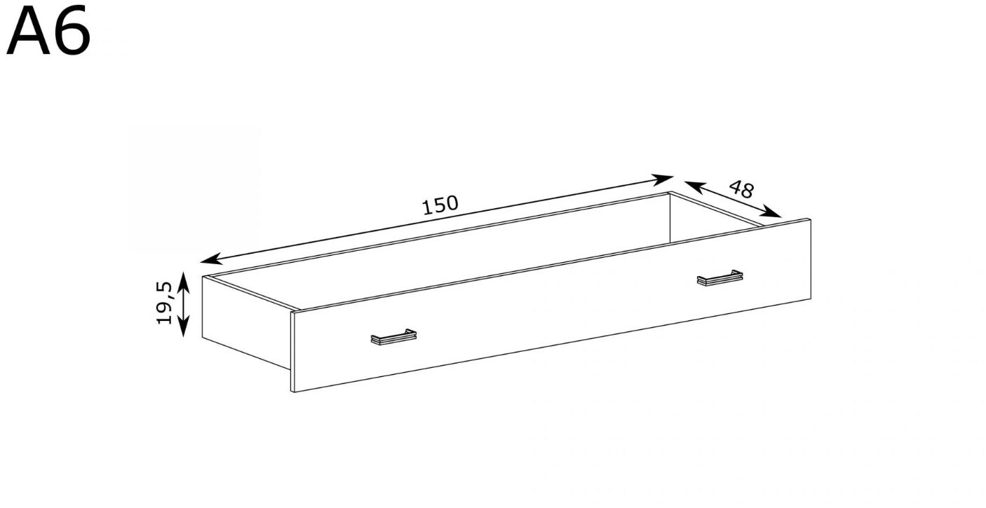 Jednoduchá zásuvka kompatibilní s postelí A-5. Dokonale vyplní prázdný prostor pod nábytkem. Objemná, ideální pro uložení ložního prádla, přikrývek, polštářů a dalších doplňků. Kovové úchyty dodávají zásuvce na půvabu. K dispozici ve dvou barvách.