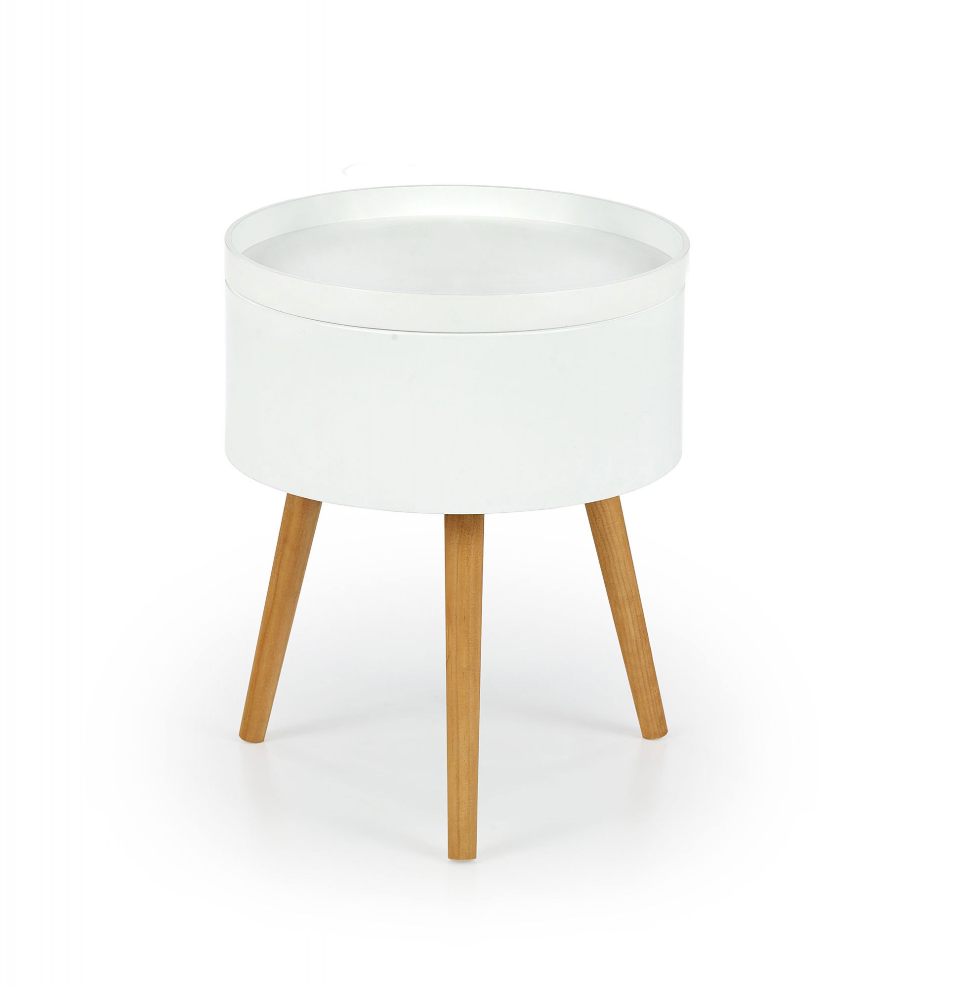 Rozměry: fi38/48 cm, Materiál: lakovaná MDF / masivní dřevo, Barva: bílá matná