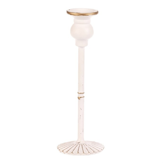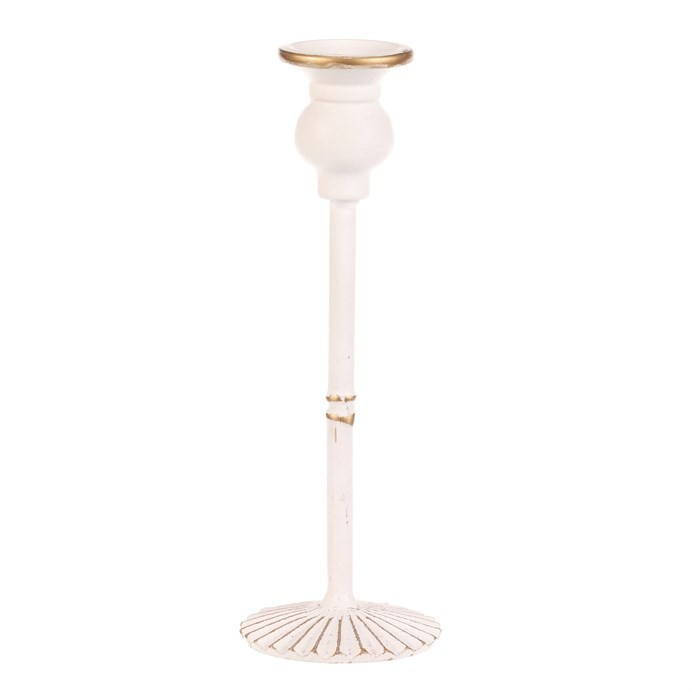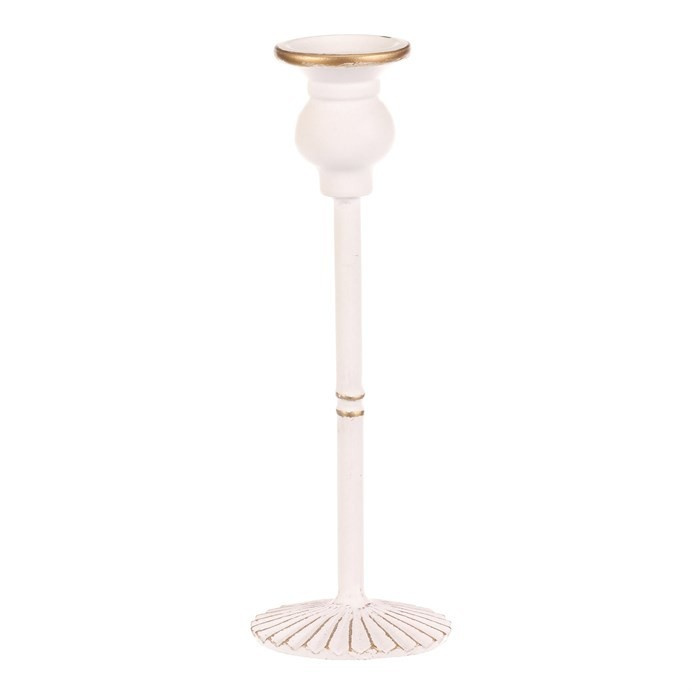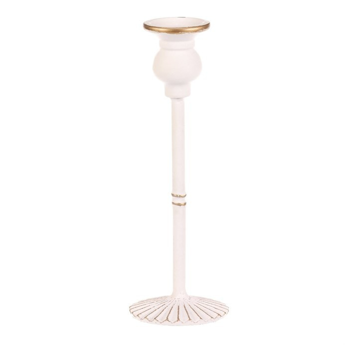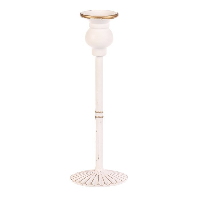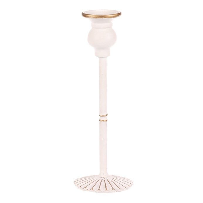 Elegantní kovový svícen v bílé barvě, vysoký 24 cm, je uzpůsoben pro vložení kónické svíčky. Díky své hmotnosti a rozšířenému podstavci je zajištěna jeho stabilita. Skvěle svým zpracováním a jemným odstínem doplní sváteční stůl při Vánocích, svatbách i jiných slavnostních chvílích.