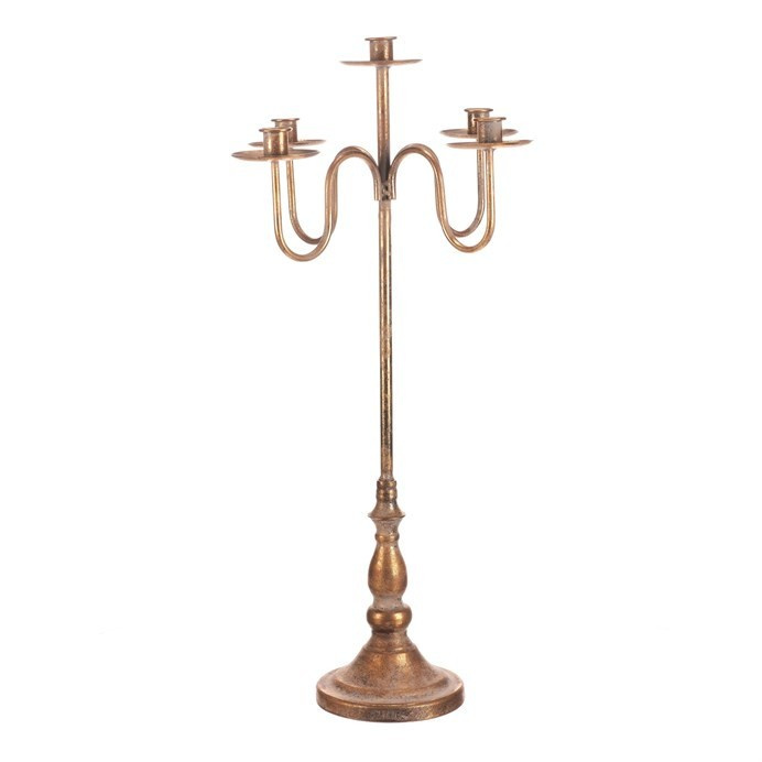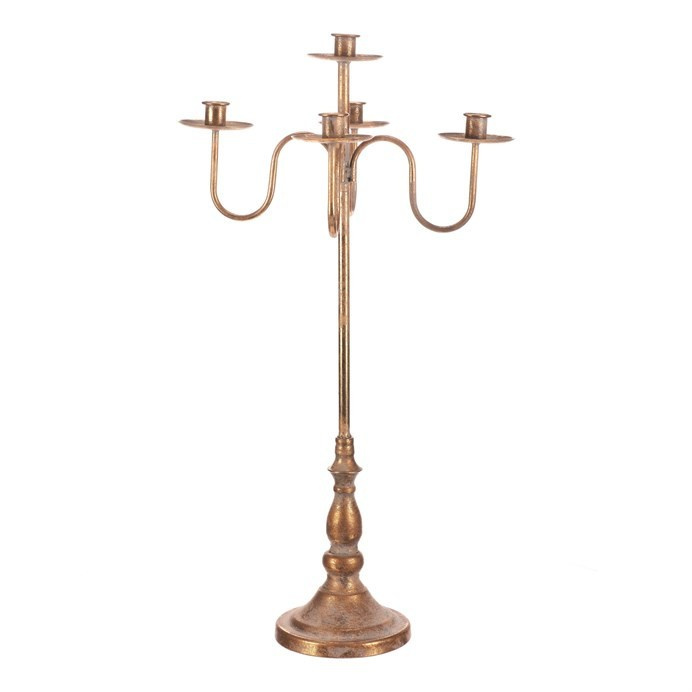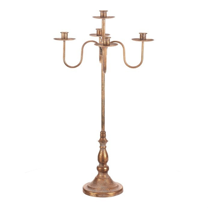 Kovový svícen s pěti rameny na kónické svíčky a výškou 71 cm v elegantní zlaté barvě, je nádhernou královskou ozdobou pro vaši vánoční výzdobu. Ochranná sklíčka a starožitný vzhled dodávají svícnu nadčasový šarm, díky kterému se stane ústředním prvkem vašeho interiéru. Je ideální nejen na Vánoce, ale i pro různé slavnostní příležitosti, kde se stane výrazným doplňkem, který zaujme zraky všech pozorovatelů.