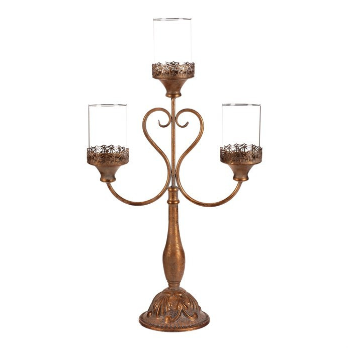 Kovový svícen se třemi rameny a výškou 65 cm v elegantní zlaté barvě je nádhernou královskou ozdobou pro vaši vánoční výzdobu. Ochranná sklíčka a starožitný vzhled dodávají svícnu nadčasový šarm, díky kterému se stane ústředním prvkem vašeho interiéru. Je ideální nejen na Vánoce, ale i pro různé slavnostní příležitosti, kde se stane výrazným doplňkem, který zaujme zraky všech pozorovatelů.
