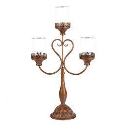 Svícen kovový - 65 cm, 3 ramena, se skly, barva zlatá