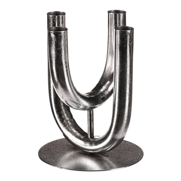 Čtyřramenný kovový svícen ve stříbrné barvě a uzpůsobený pro umístění kónických svíček, je elegantním doplňkem pro vaše adventní aranžmá, případně i pro celoroční použití. Jeho unikátní design ve tvaru dvou překřížených "U" nad sebou, přináší do vašeho domova stylový dotek, který zdůrazní atmosféru klidu a pohody. S tímto svícnem budete mít možnost vytvořit si nezapomenutelné okamžiky a podtrhnout jedinečnost každého momentu.