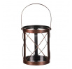 Kovový svícen ve tvaru lucerny s narezavělým povrchem bude originálním a nevšedním předmětem vaší dekorační sbírky. Jedná se o kovovou konstrukci s poutkem pro přenášení či zavěšení, přičemž z vnitřní strany je vloženo čiré sklíčko. Svíčka tak bude v bezpečí a chráněná proti větru, což umožňuje tento svícen používat i ve venkovních prostorech. Nejlépe jej můžete zavěsit třeba za trám pergoly, altánku nebo položit jen tak na stůl. Vychutnávejte si kouzelné okamžiky strávené o temných večerech při rozsvícené svíčce umístěné v této krásné dekoraci.
