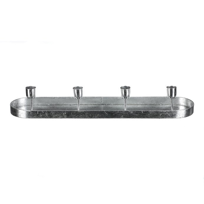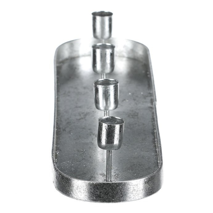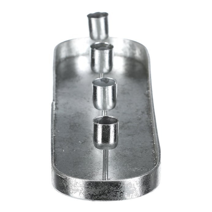 Svícen kovový - na 4 kónické svíčky, oválný, stříbrný