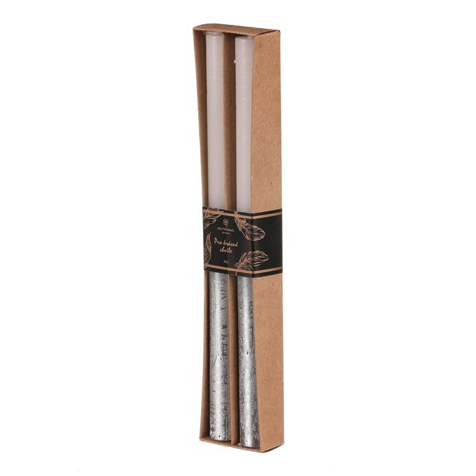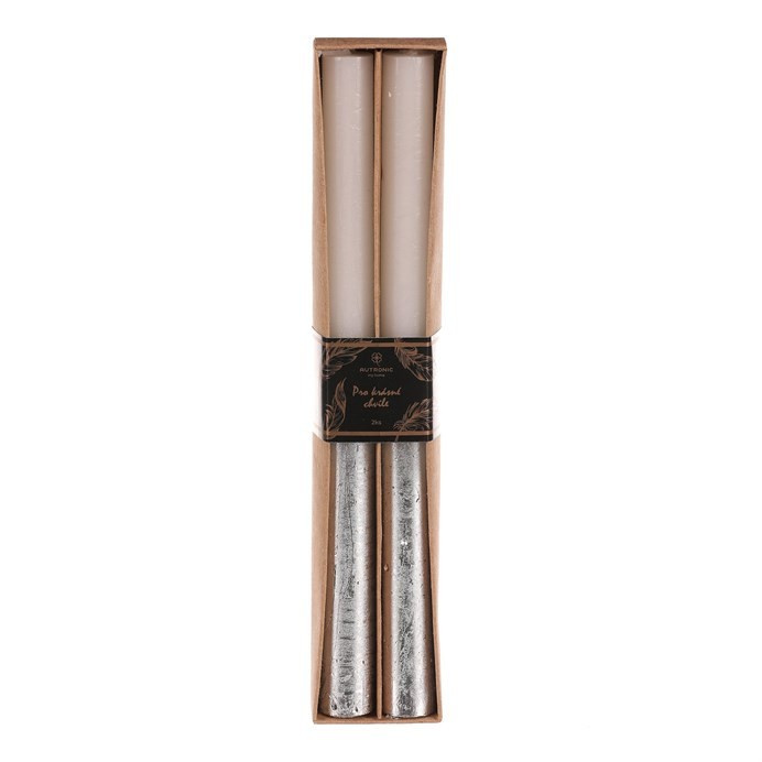 Svíčka kónická - parafín, bílá/stříbrná, cena za krabičku (2 ks)