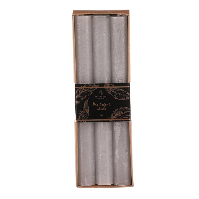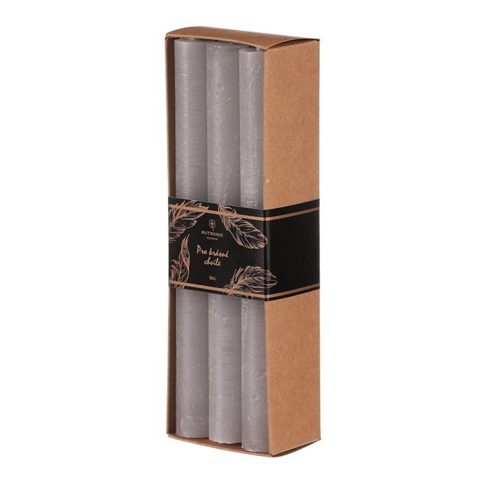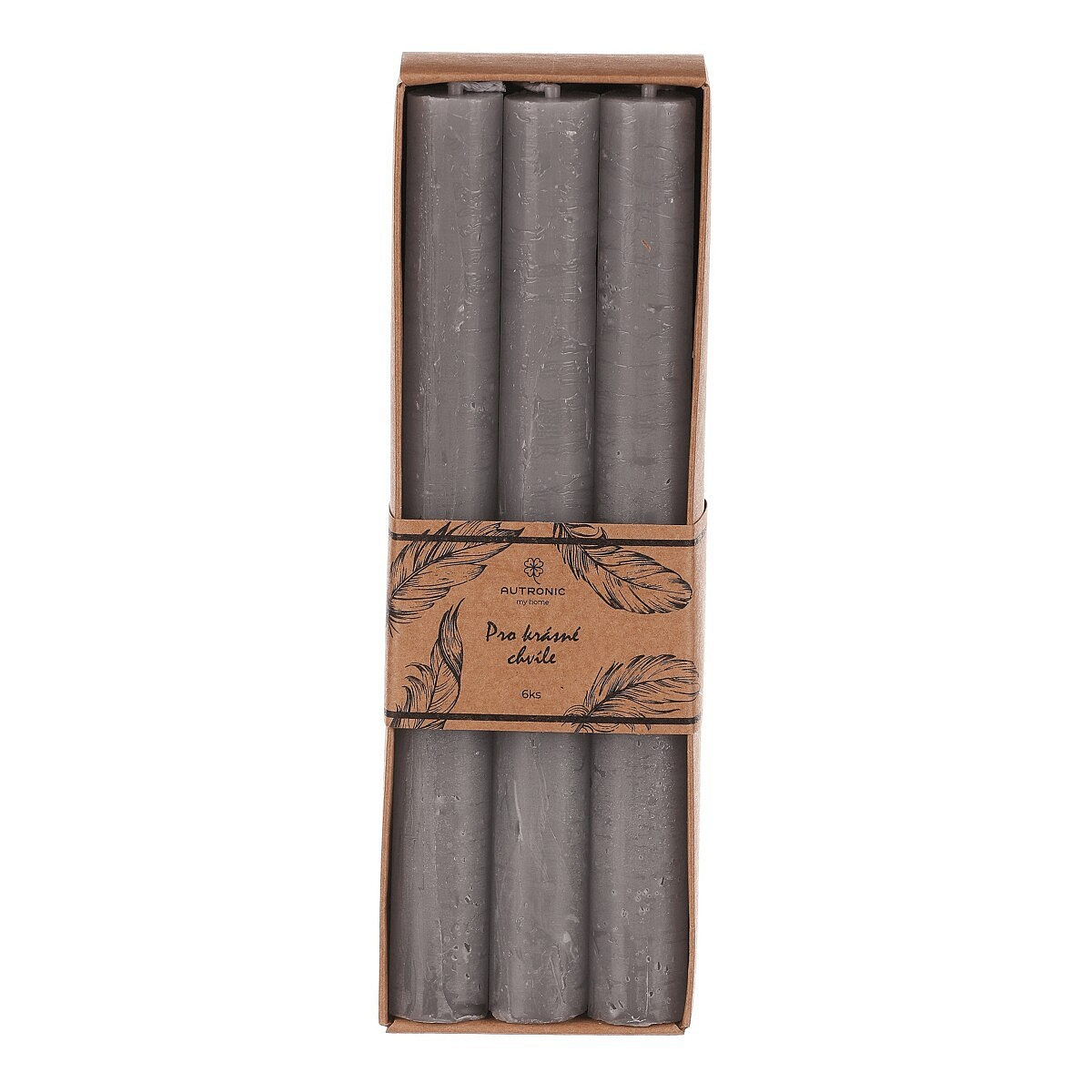 Svíčka kónická - parafín, šedá, cena za krabičku (6 ks)
