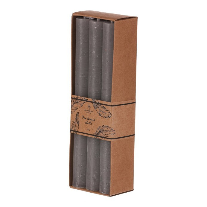 Užijte si romantické chvilky plné relaxace s šedými kónickými svíčkami ze stoprocentního parafínového vosku. V balení najdete 6 kusů stejného odstínu, přičemž doba hoření každé z nich činí až 8 hodin. Tyto svíčky mají celoroční využití a přinesou do vašeho prostoru neodolatelnou atmosféru klidu a pohody. Užívejte si ty krásné okamžiky relaxace a romantiky při pohledu na nádherné světlo, zejména za temných večerů a nocí. Existuje nekonečně mnoho možností a způsobů, jak s nimi naložit. Můžou zdobit věnce, být součástí různých aranží, anebo jim vyberte nádherný svícen z naší široké nabídky, na kterém budou vypadat božsky. Ještě je nutné dodat, že se důrazně doporučuje skladovat svíčky, a tím spíše je zapálené vystavovat, mimo dosah dětí.