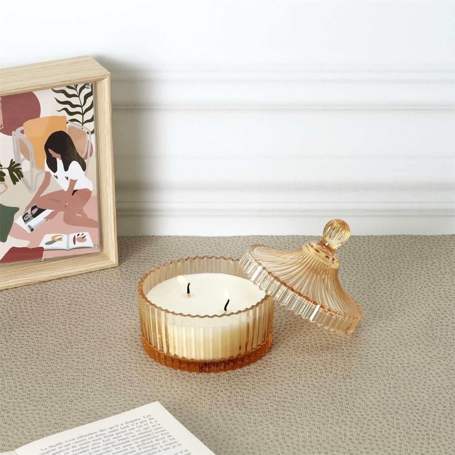 Budeš okouzlen svíčkou ve svícnu inspirovaném bohémským sklem. Svíčka v nádobě s víčkem v sadě poskytuje nejen zajímavě rozptýlené světlo, když hoří. Svíčka je také fantastickou ozdobou, i když nehoří. Parfémovaná svíčka s vůní jantaru dodá příjemnou svěží vůni.- Skleněné pouzdro - Výdrž: 10 h - Hmotnost: 60 g Rozměry balení 12,30 x 10 x 10