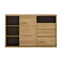 SYRAKUSA 43- Komoda s policemi 1D3S- lamino dub shetland/ šedá (Shetland 43=2BALÍKY) (W) (K150) NOVINKA