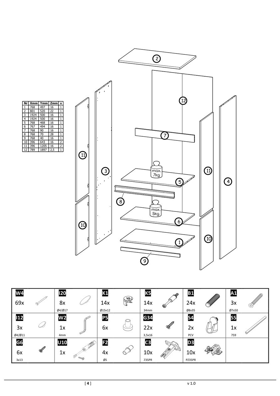 uvnitř: 1 x tyč, 1 x police,