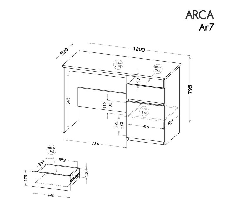 Systém "ARCA" AR7 (Psací stůl D S) - Barva: arktická bílá