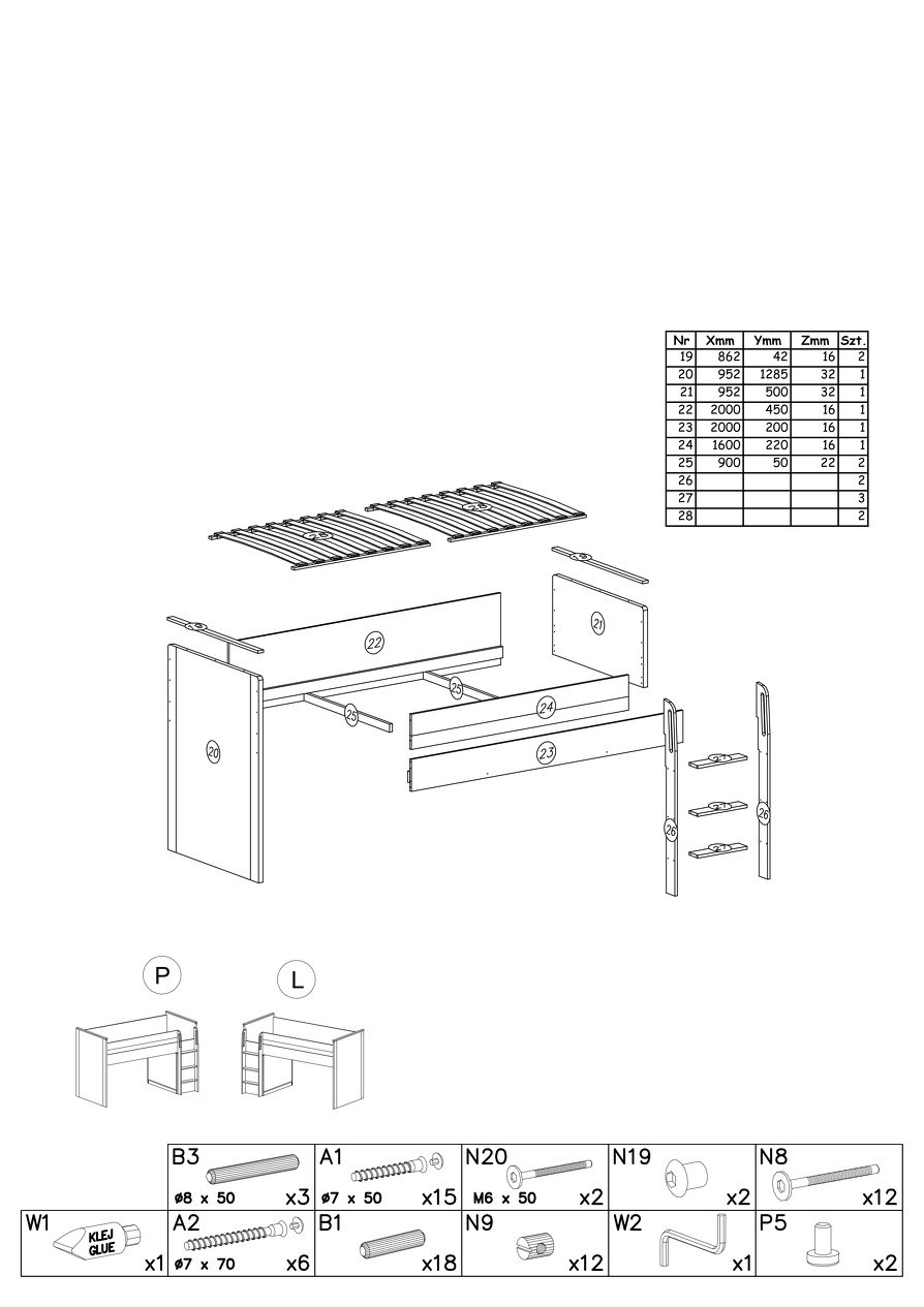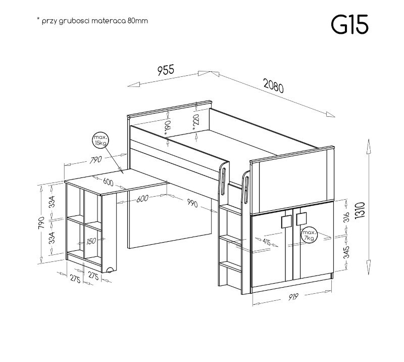 Systém "GUMI" G15 (Postel s psacím stolem) - Barva: bílý diamant