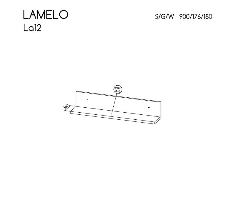 Systém "LAMELO" LA12 (Polička) - Barva: černá