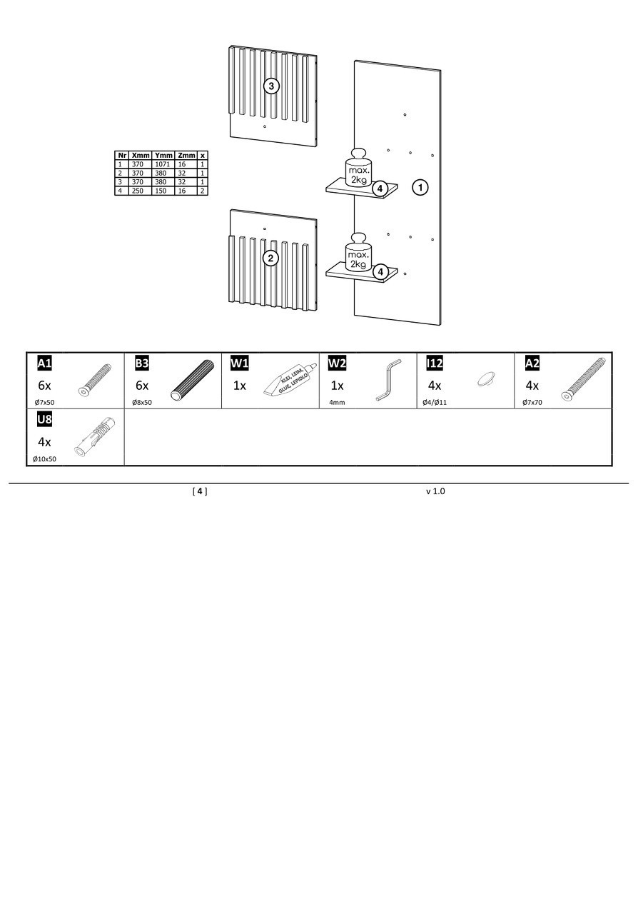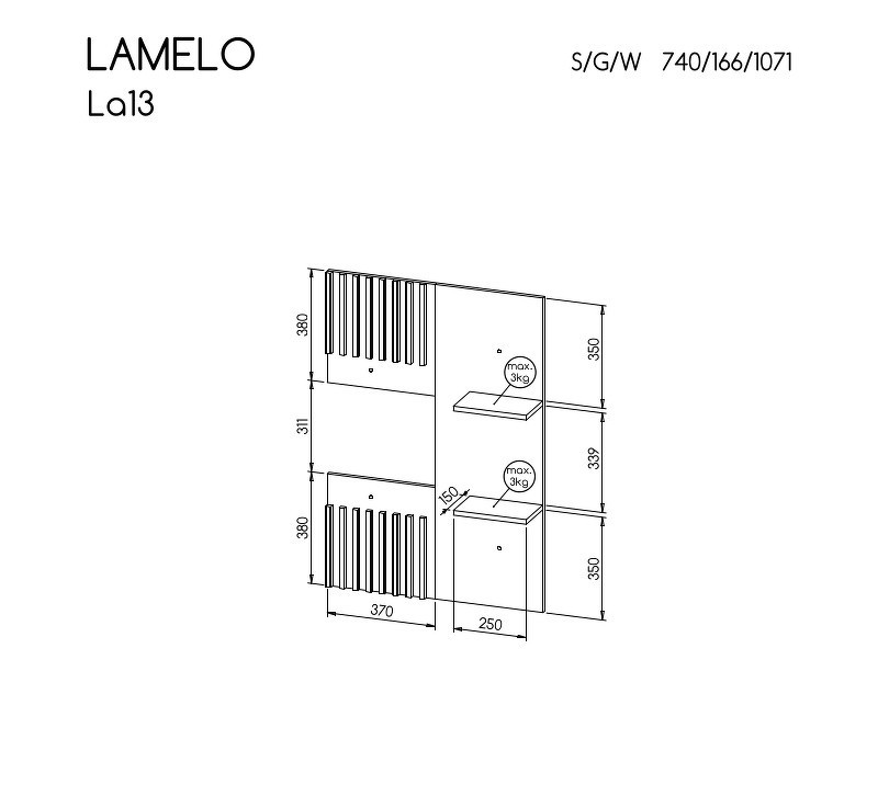 Panel RTV se dvěma policemi.