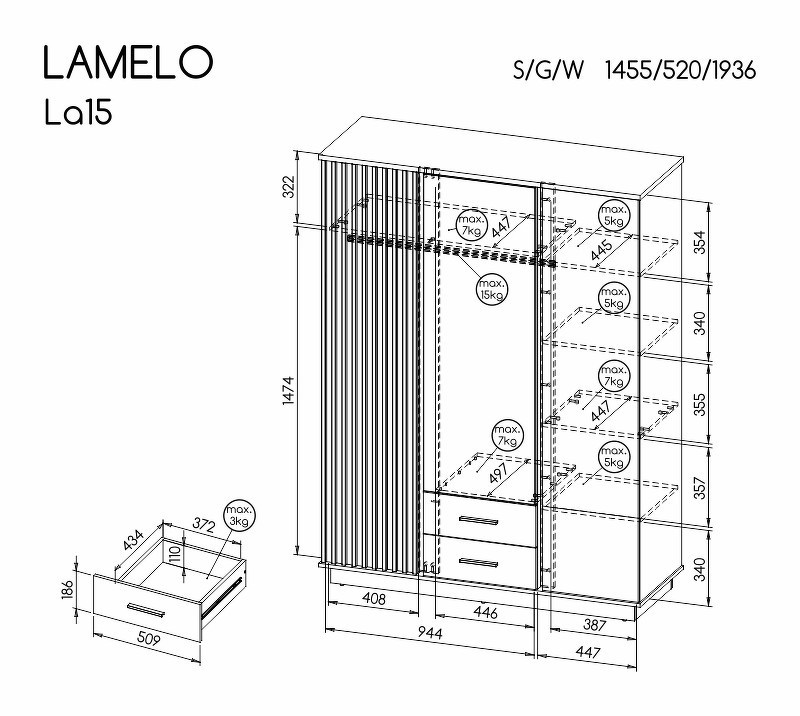 Systém "LAMELO" LA15 (skříň 3D2S) - Barva: černá
