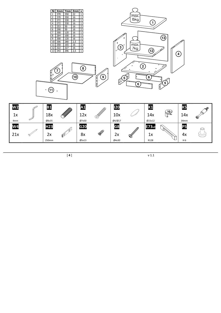 Skříňka s jednou policí a jednou zásuvkou.