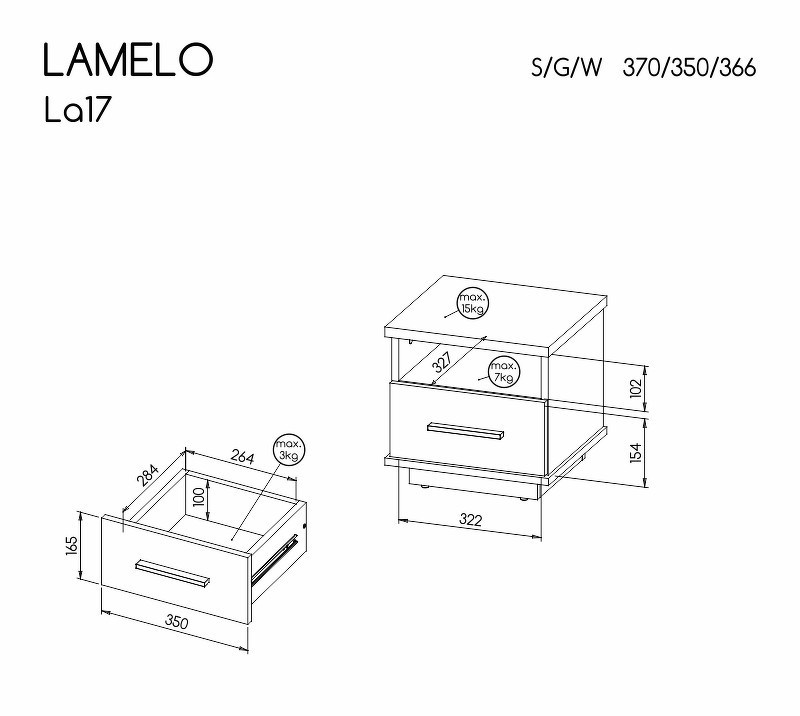 Systém "LAMELO" LA17 (noční stolek 1S) - Barva: černá