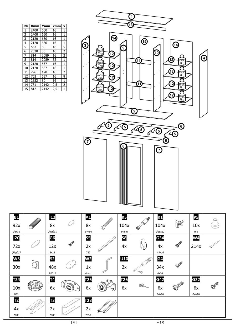 uvnitř: 2 x tyč a 8 x police,