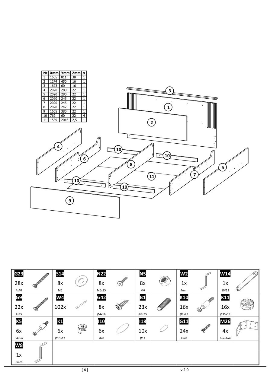 korpus nožní část, boky: laminovaná dřevotříska Dub Wotan 22 mm,