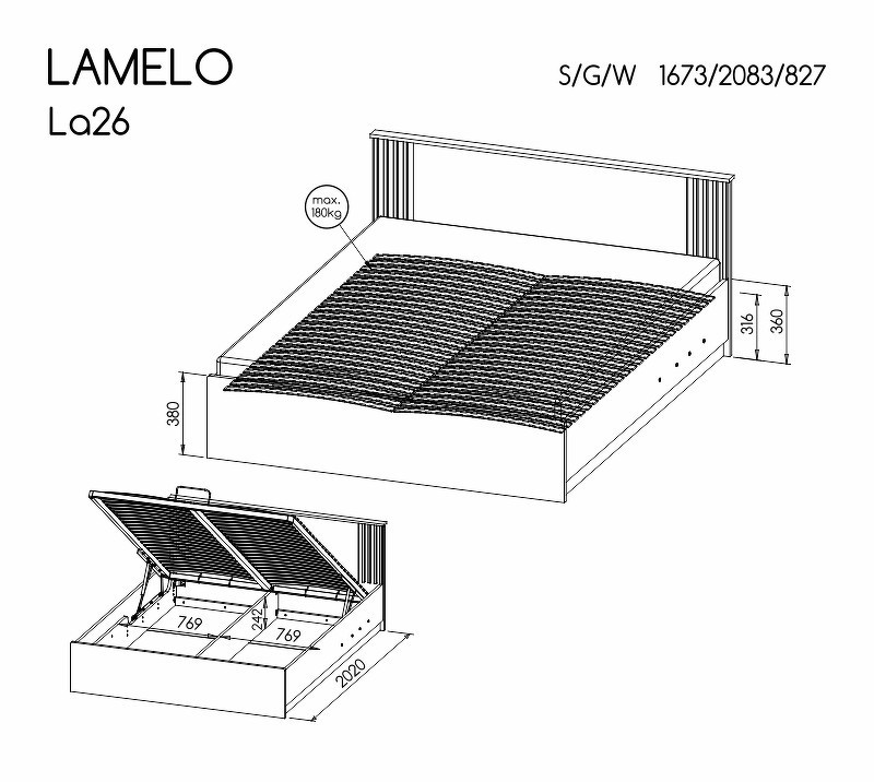 Systém "LAMELO" LA26 (postel s výtahem) - Barva: černá