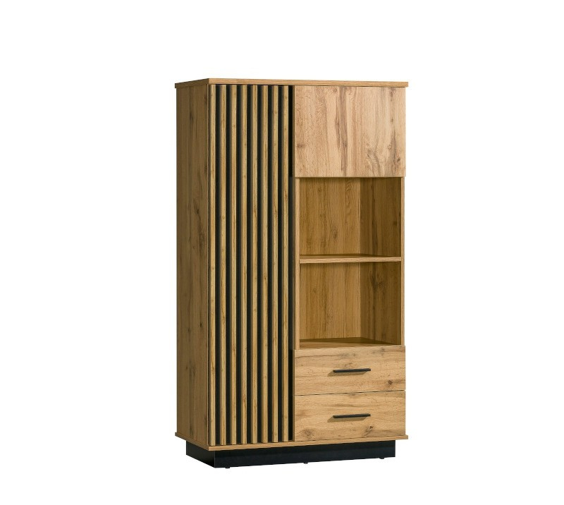 Skříňka se dvěma dveřmi a dvěma zásuvkami.