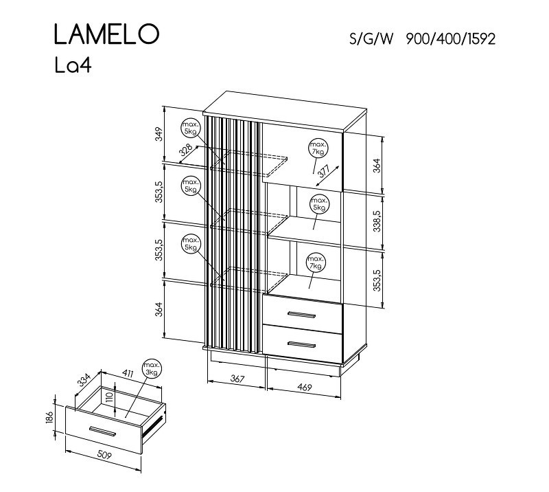 Systém "LAMELO" LA4 (Regál 2D2S) - Barva: černá