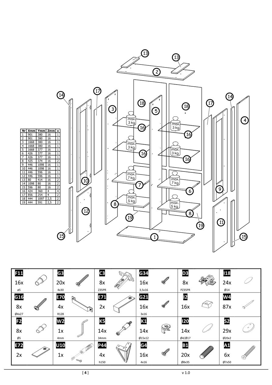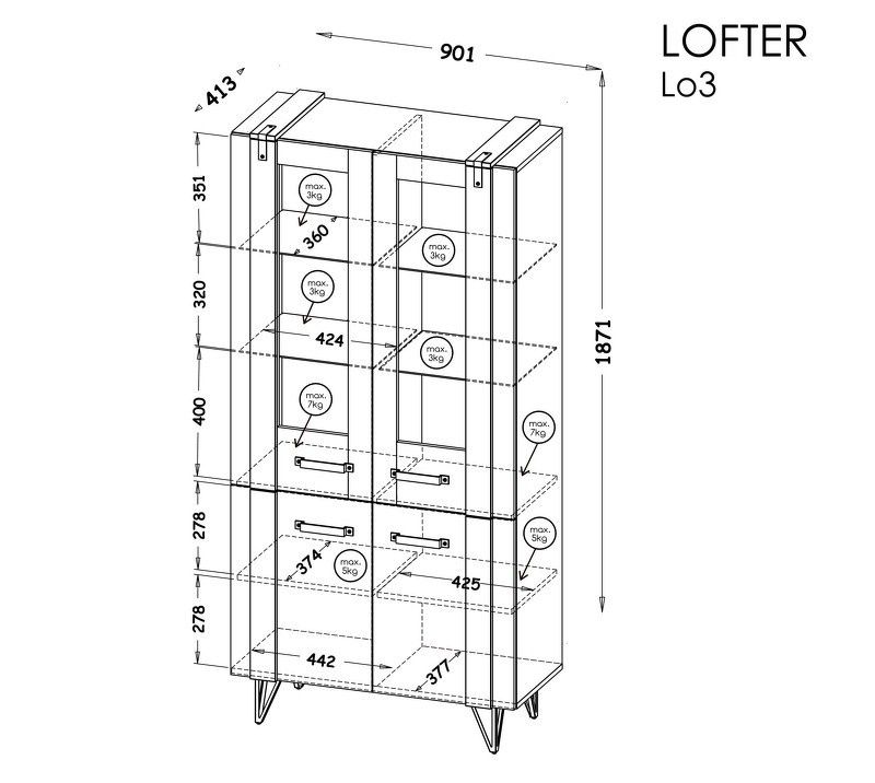 uvnitř: 2 x police, 4 x skleněná police,