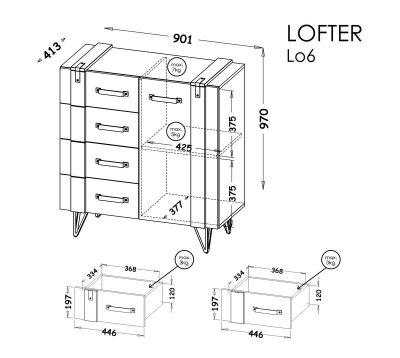 Systém "LOFTER" LO6 (Komoda 1D 4S) - Barva: beton millenium