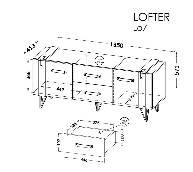 Systém "LOFTER" LO7 (TV skříňka 2D 2S) - Barva: beton millenium