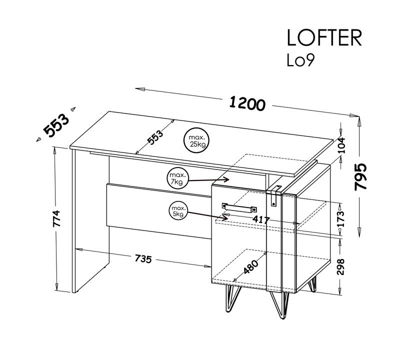 Systém "LOFTER" LO9 (Stůl D) - Barva: beton millenium