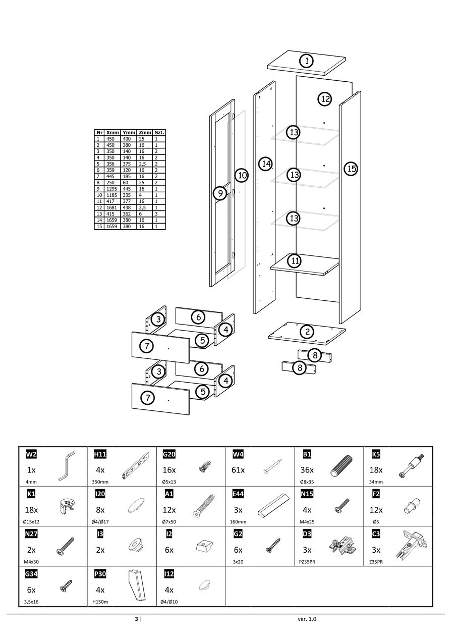 čela: průhledné sklo, laminovaná dřevotříska Borovice Andersen 16mm,