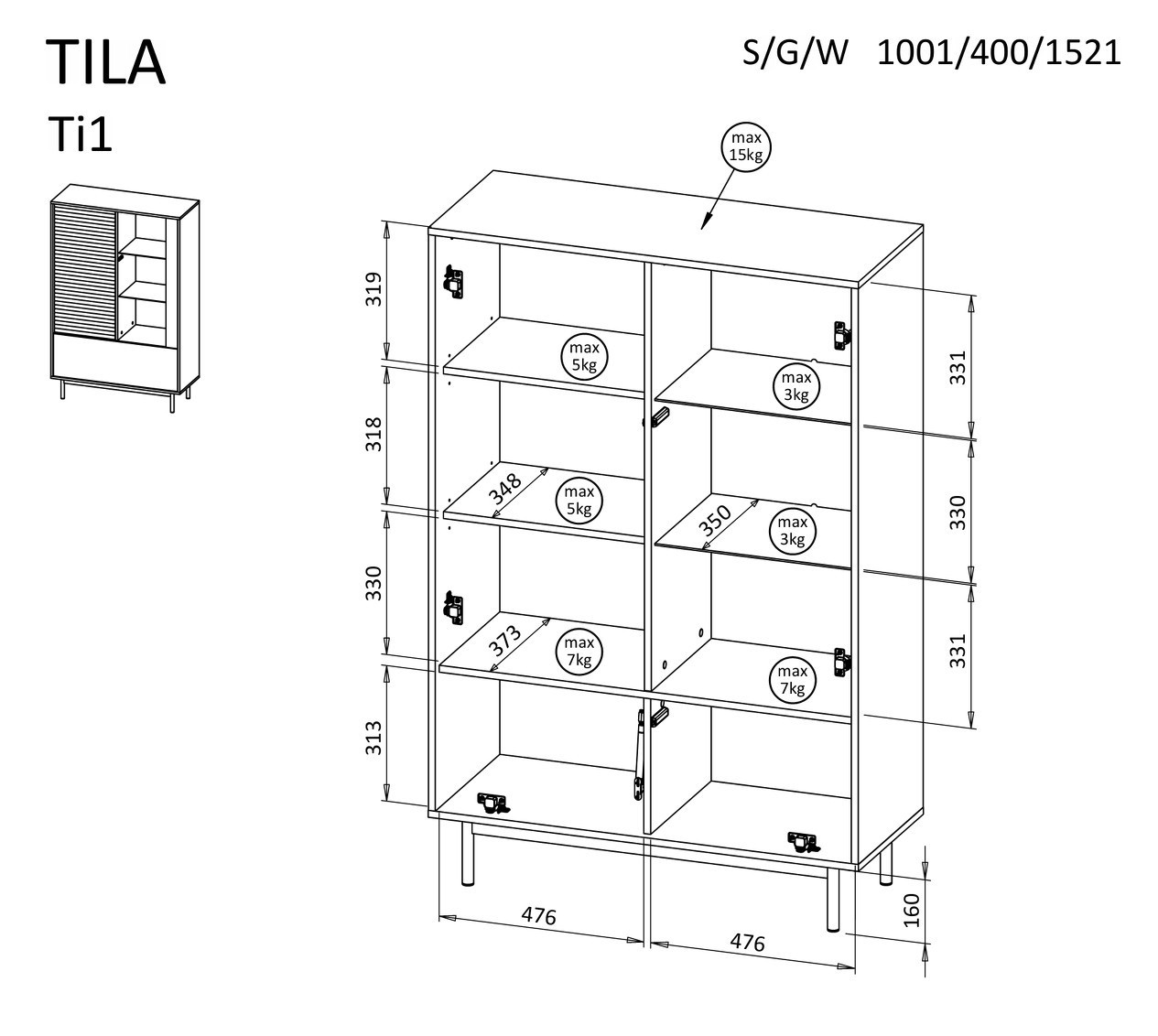 Vitrína TILA - TI1, Olejovaný dub / Kašmír