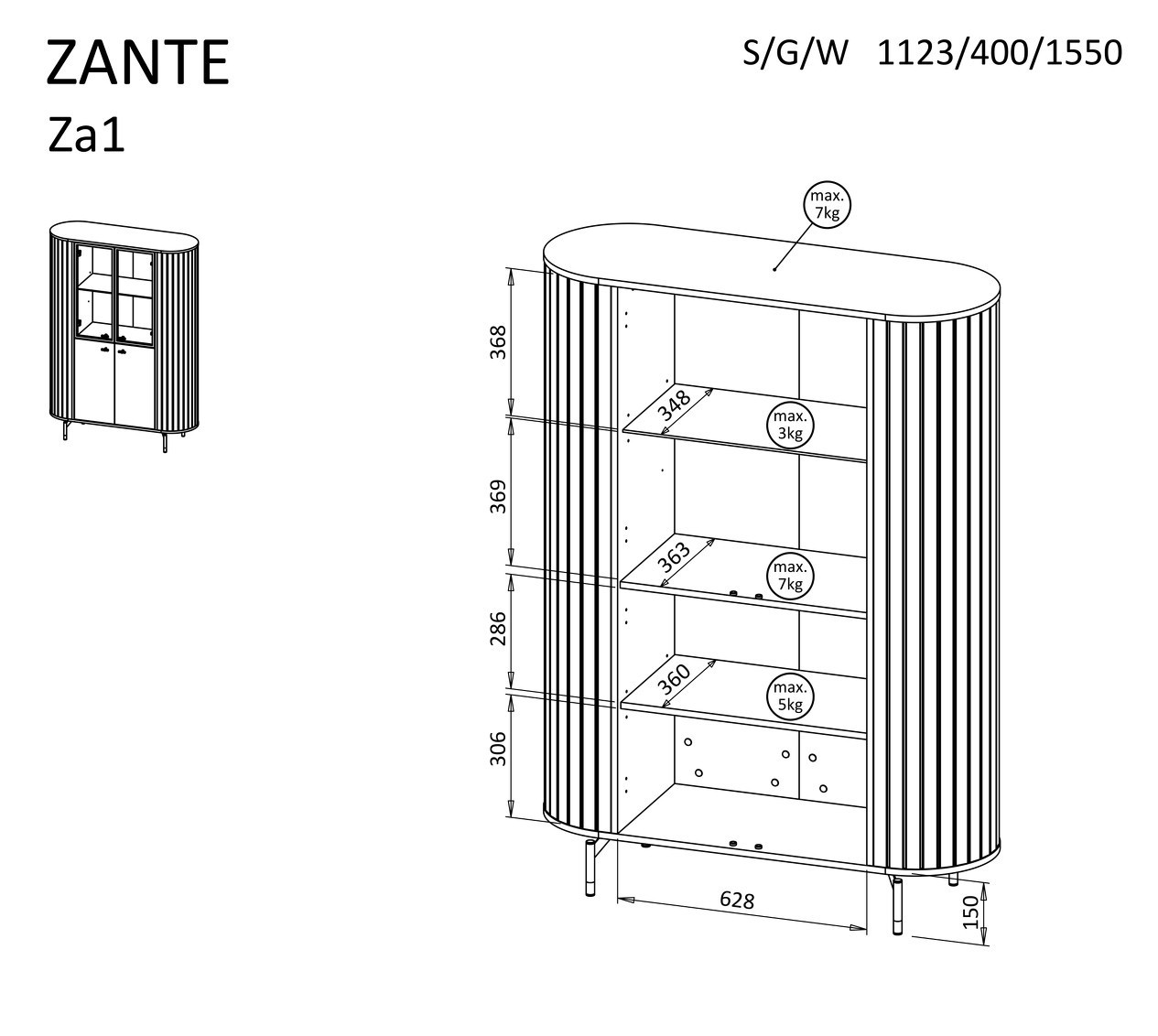 Nábytek ZANTE je navržen s ohledem na maximální využití prostoru. Díky svým rozměrům nabízí dostatek úložného prostoru pro vaše oblíbené dekorace, knihy či jiné předměty.