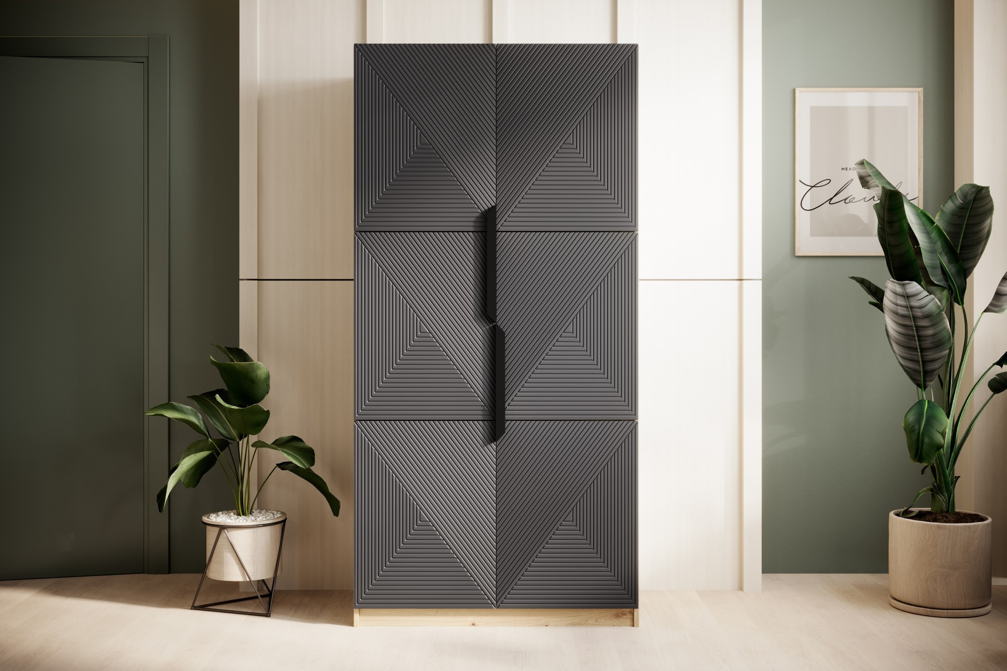 Skříň Asha s rýhovaným čelem a kovovými úchyty 100 cm - artisan / rivier stone mat / černé úchyty, Šířka: 100, Výška: 207, Hloubka: 55, Výška nožek: , Hloubka desky: , Montáž: