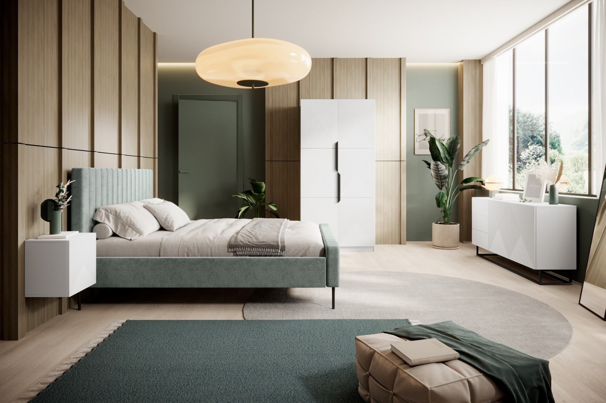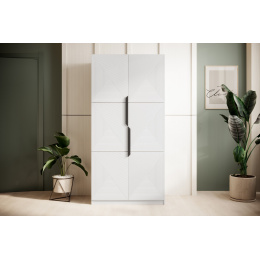 Skříň Asha s rýhovaným čelem a kovovými úchyty 100 cm - bílý mat / černé úchyty, Šířka: 100, Výška: 207, Hloubka: 55, Výška nožek: , Hloubka desky: , Montáž:
