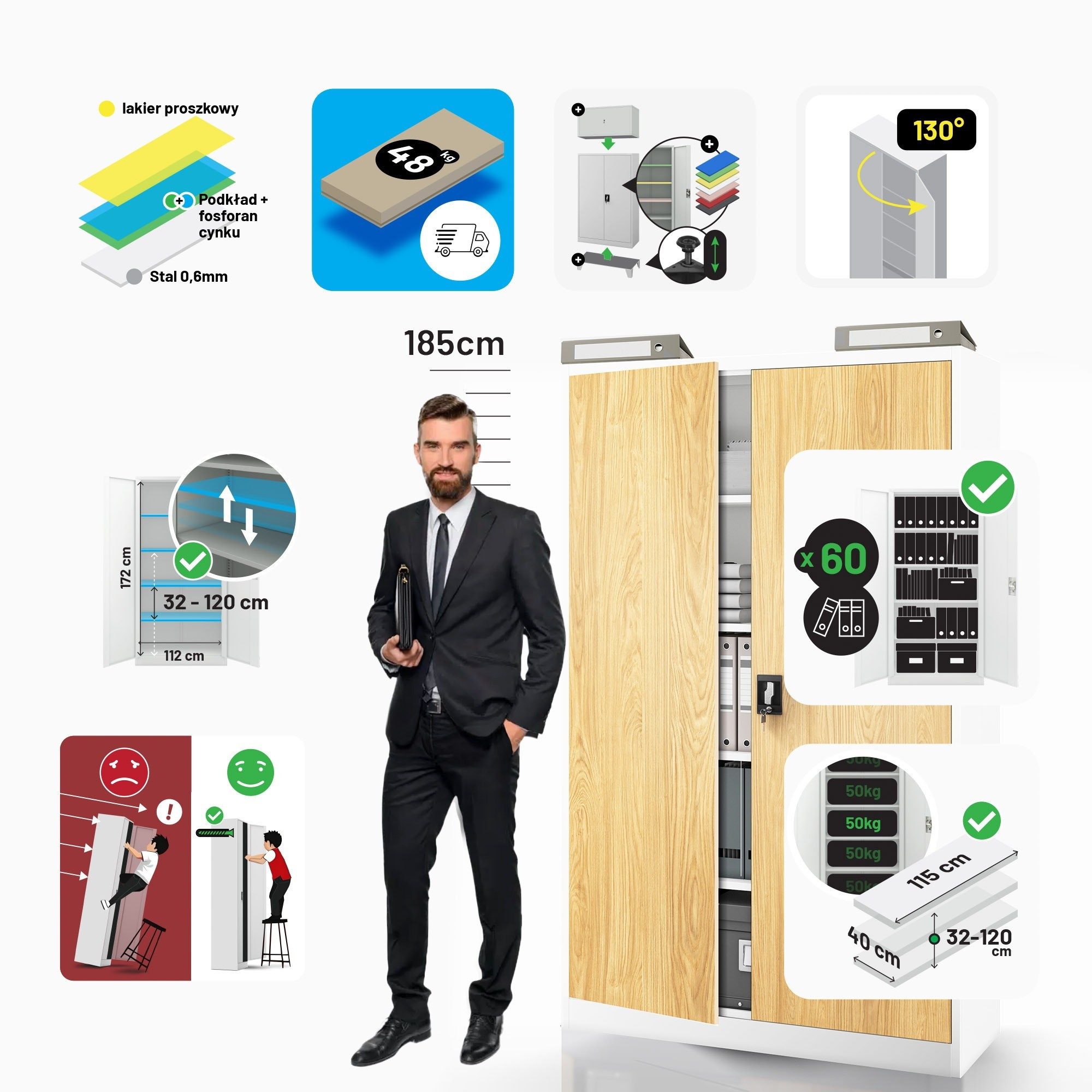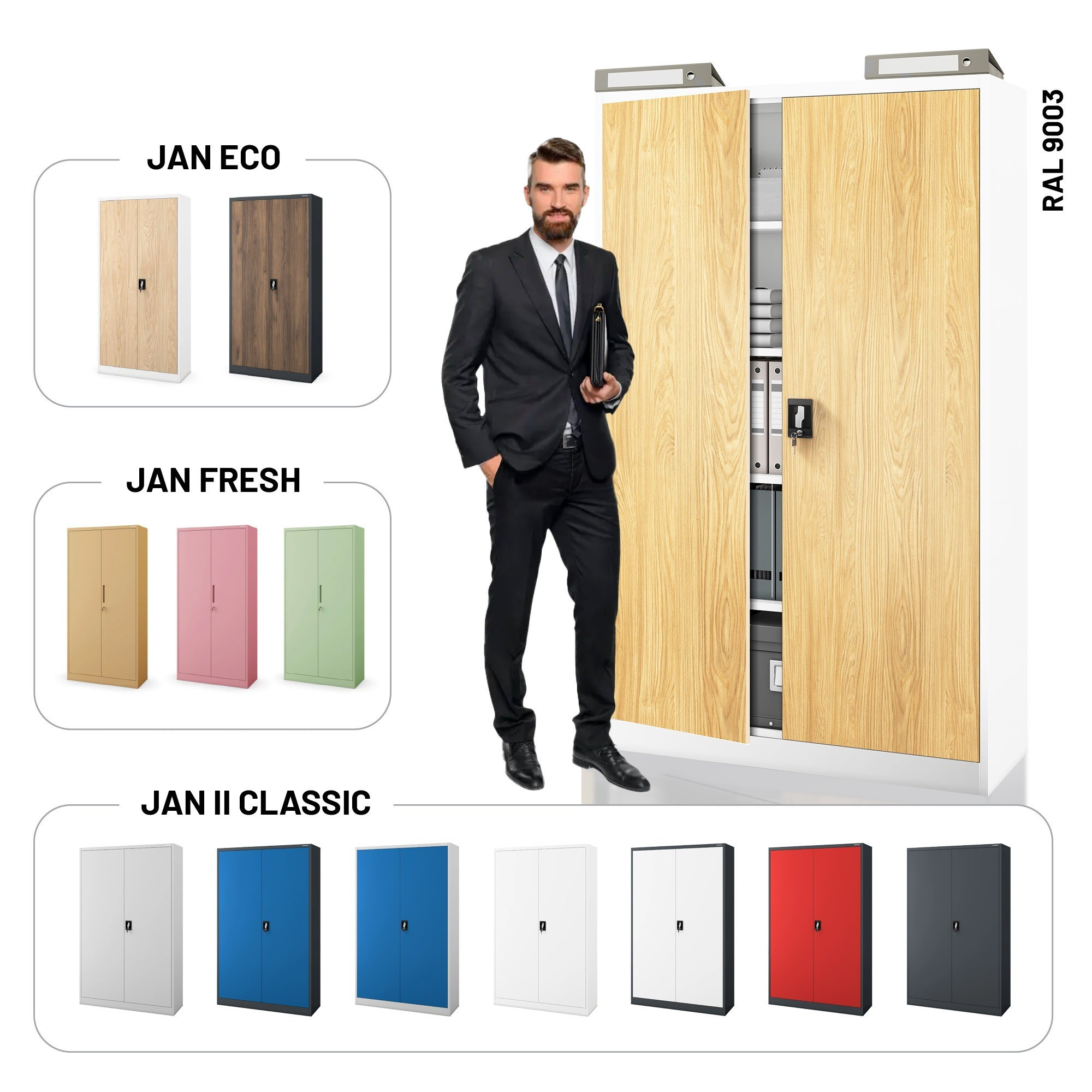 Kancelářská kovová skříň Bílá/Zlatý dub: Eco Design JAN II