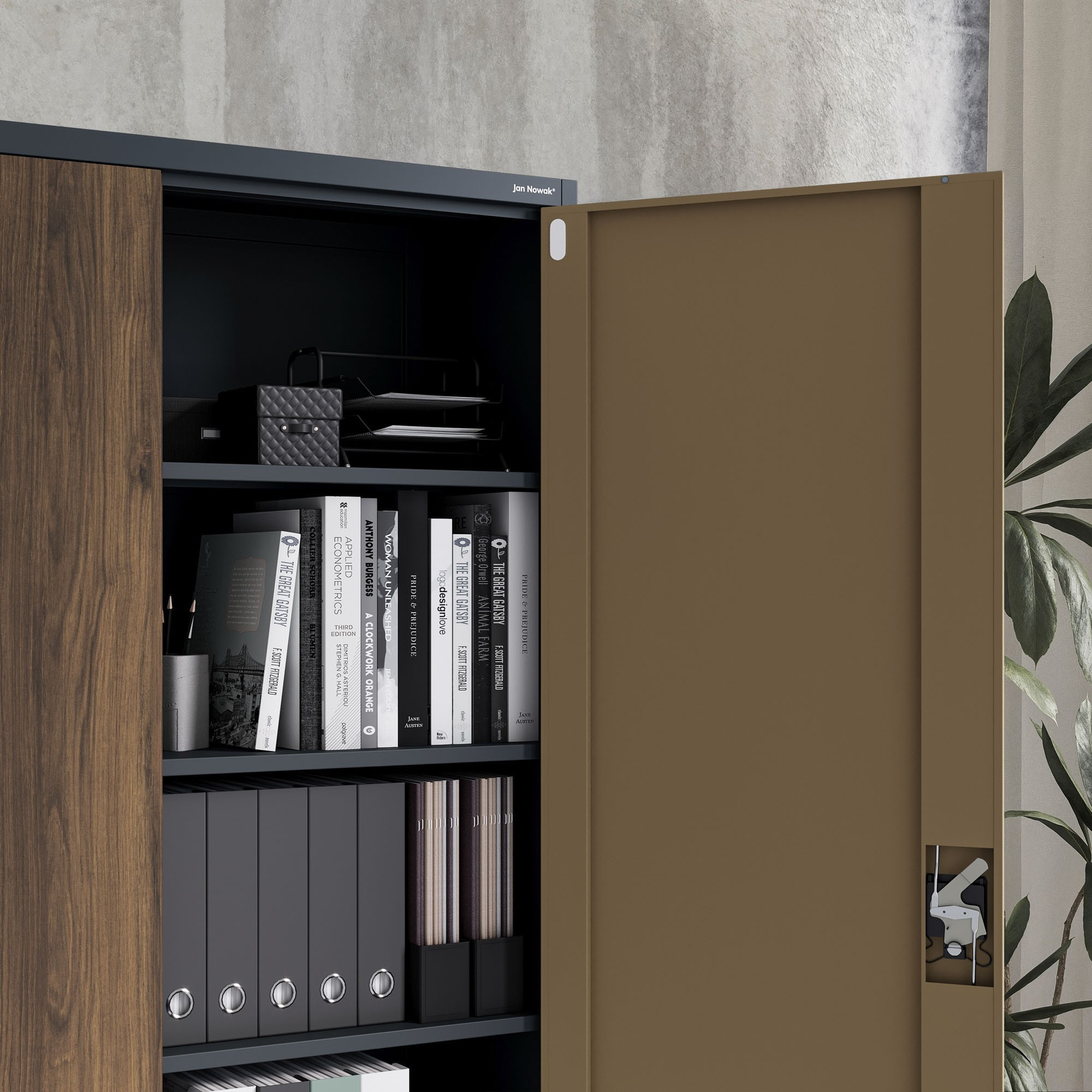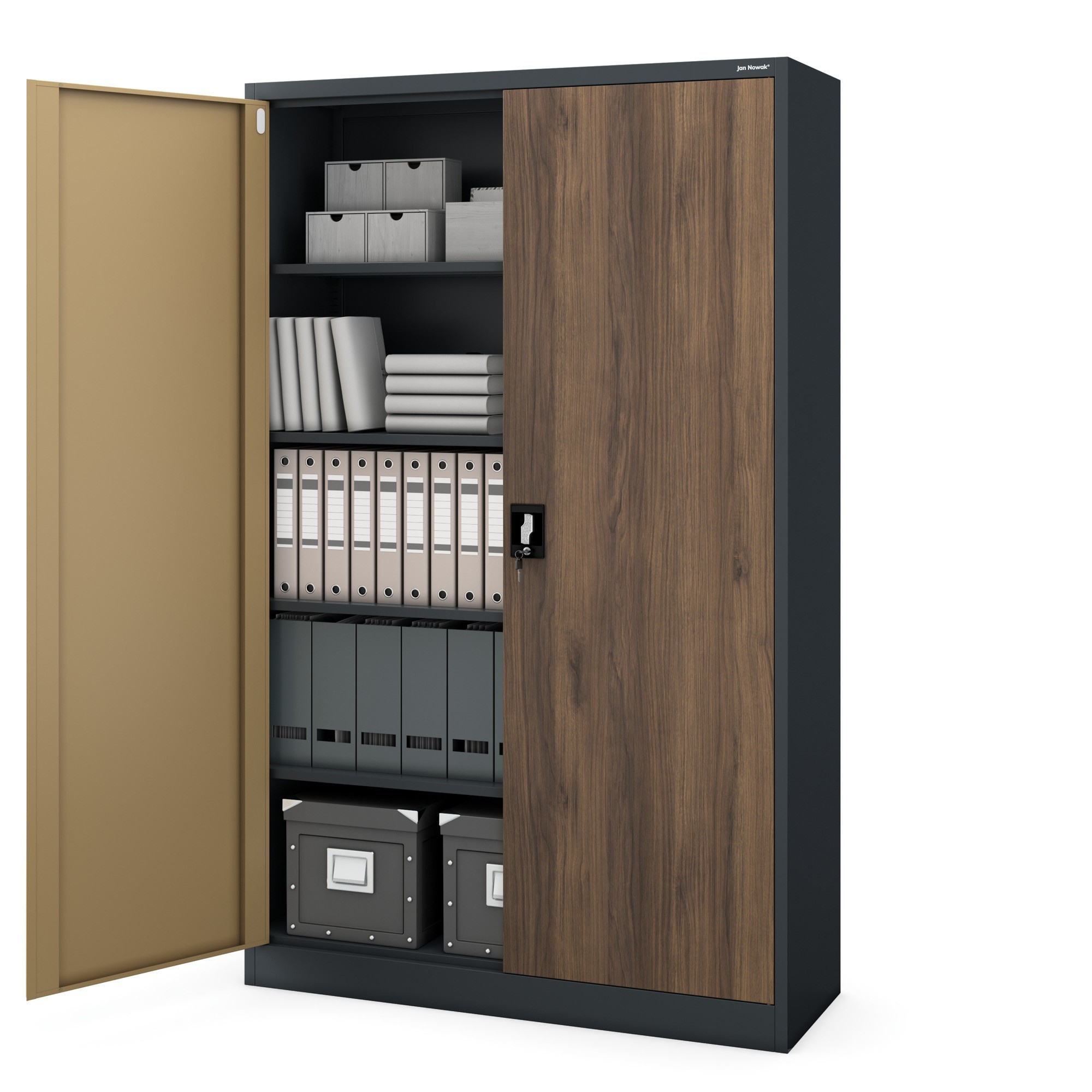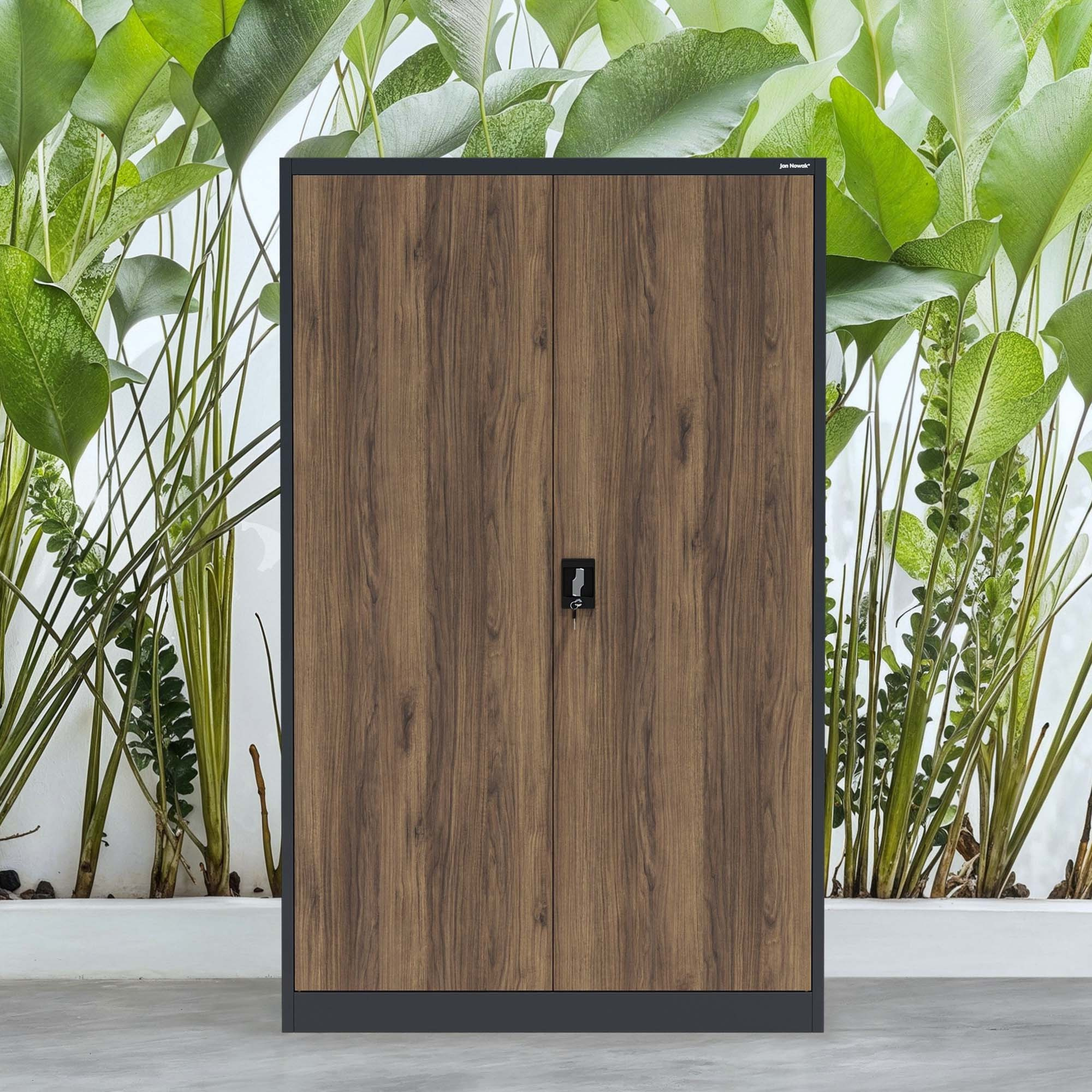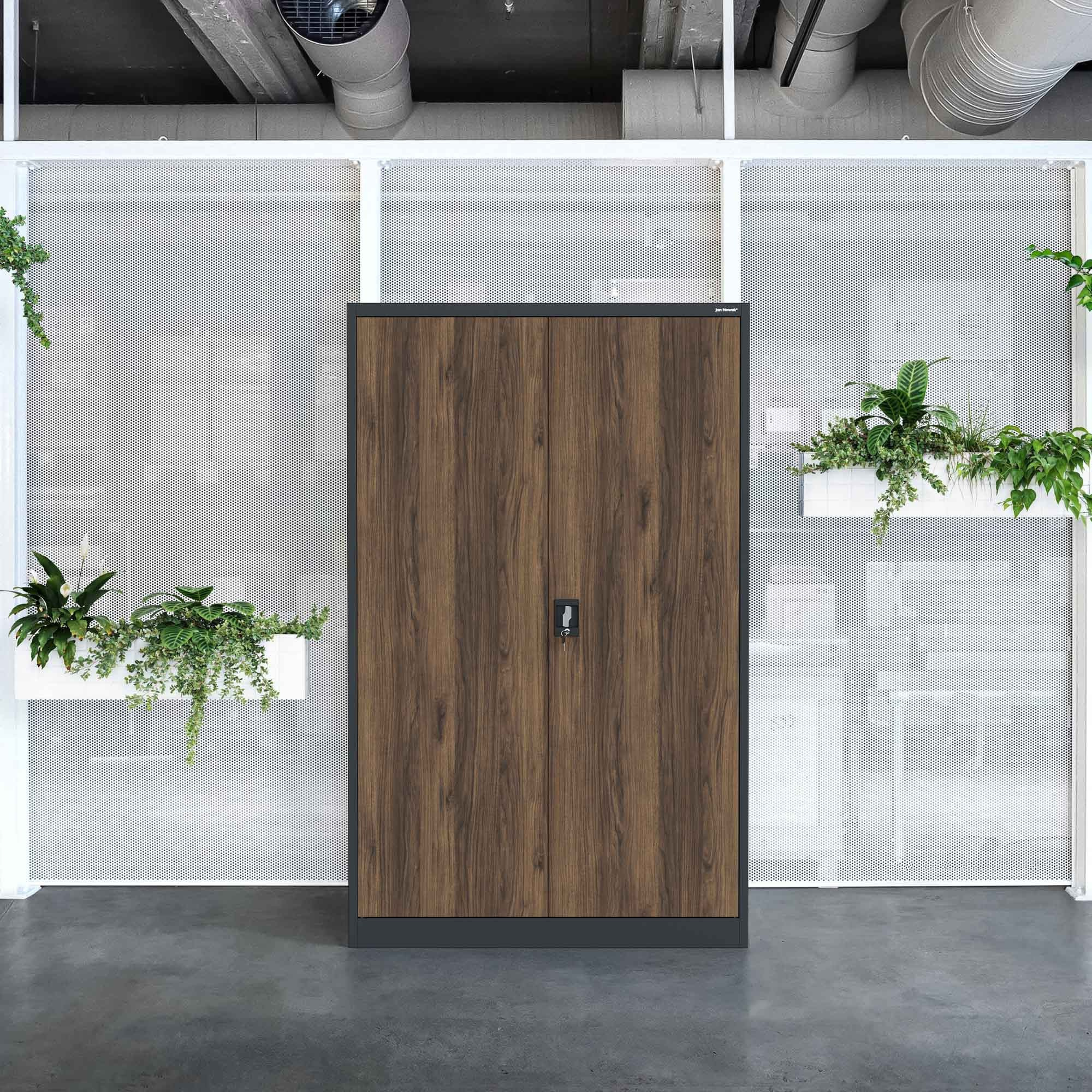 Kovová kancelářská skříň na dokumenty JAN II, Eco Design: antracit/ořech