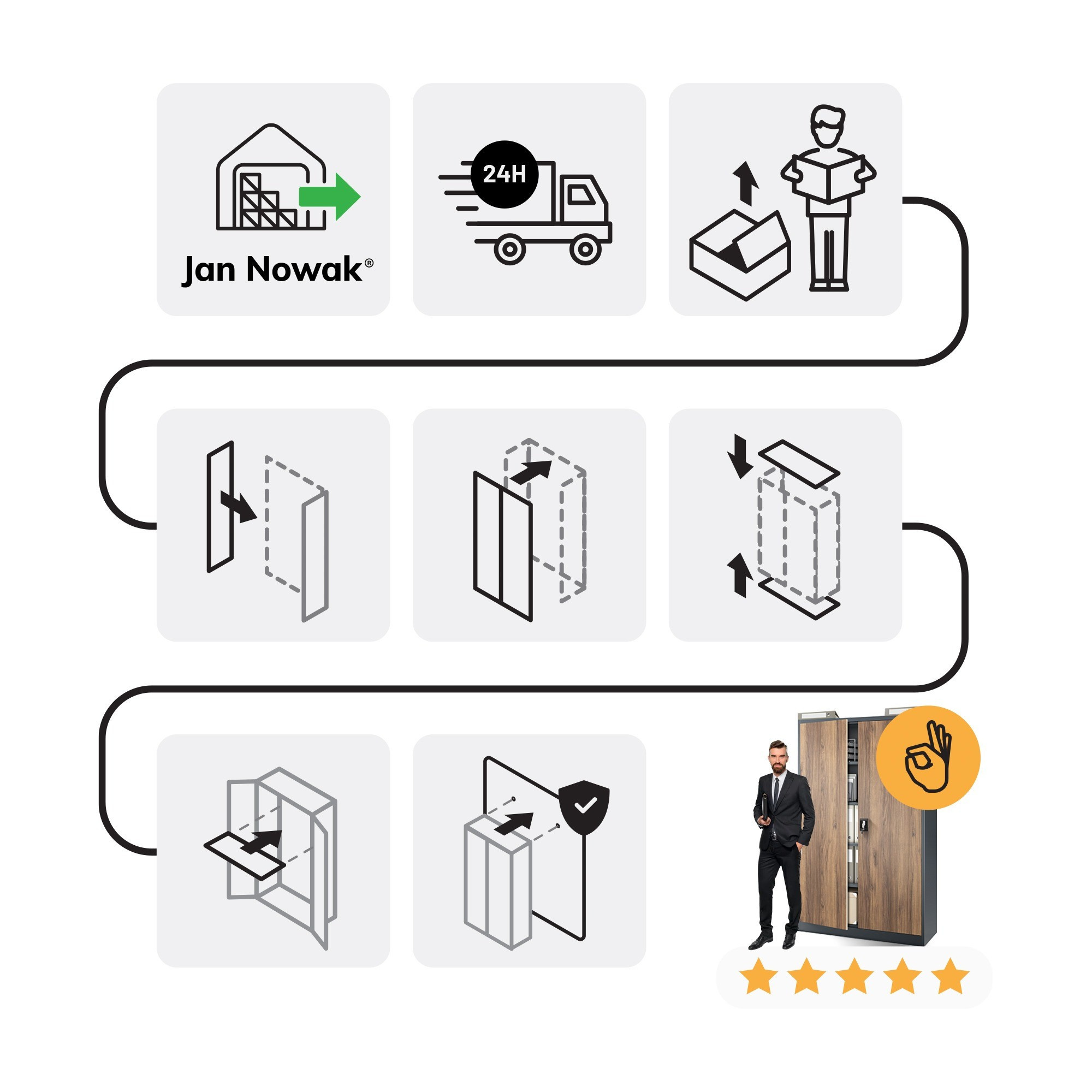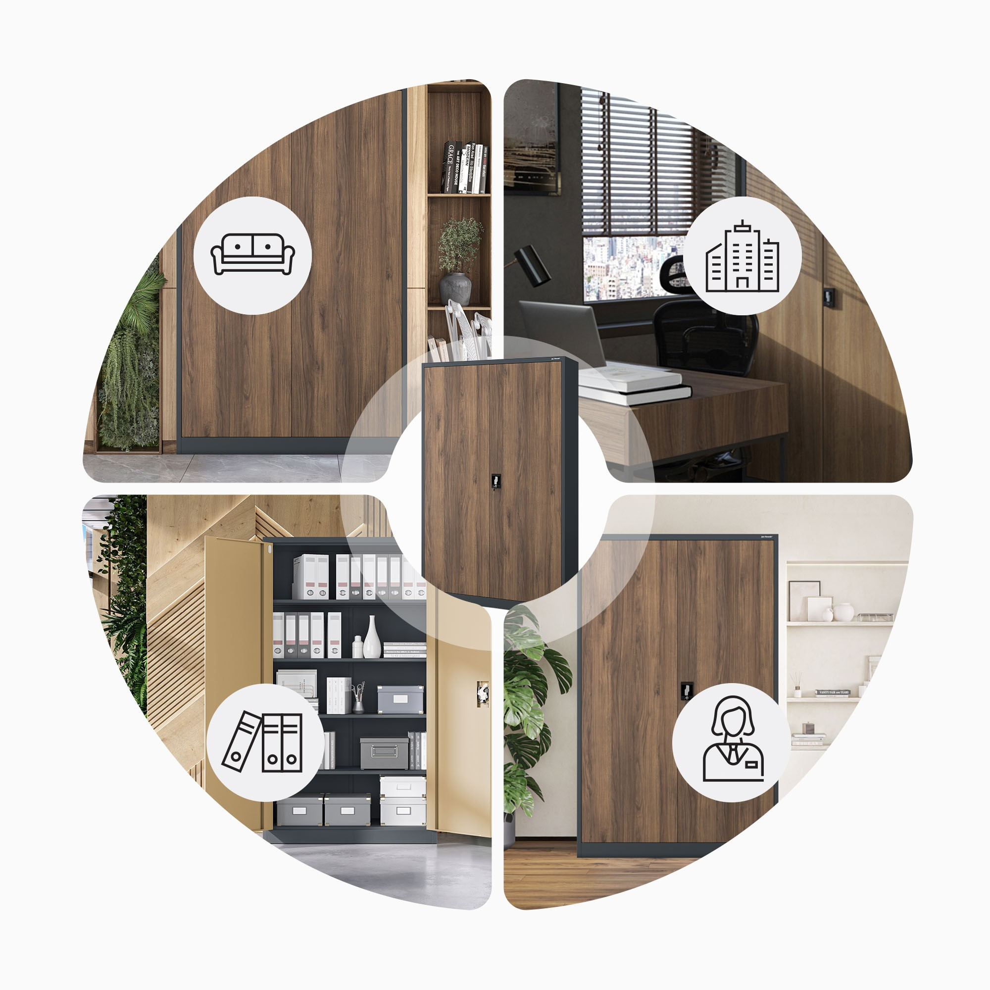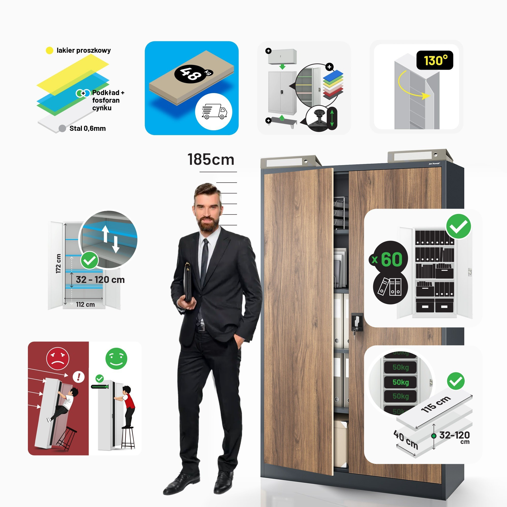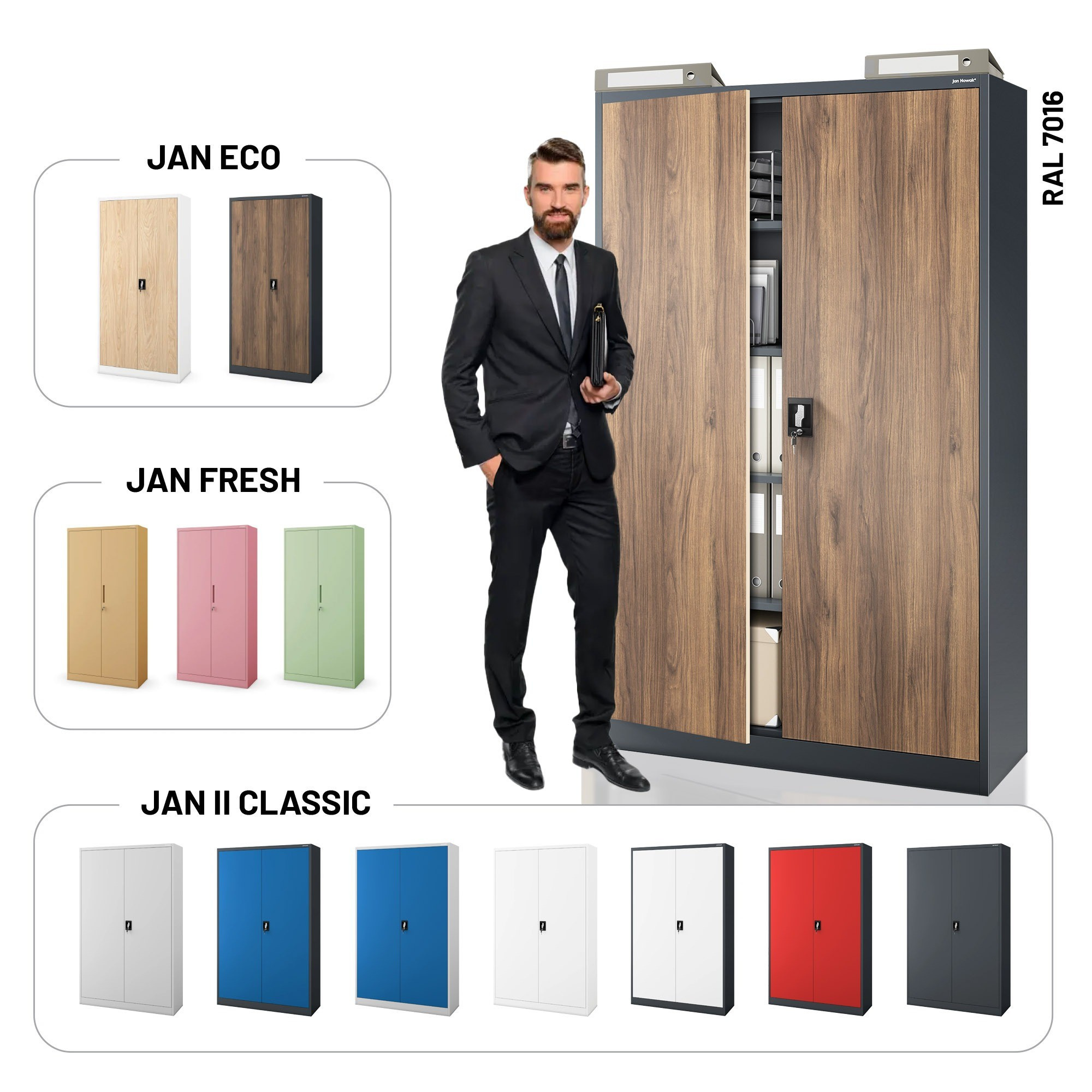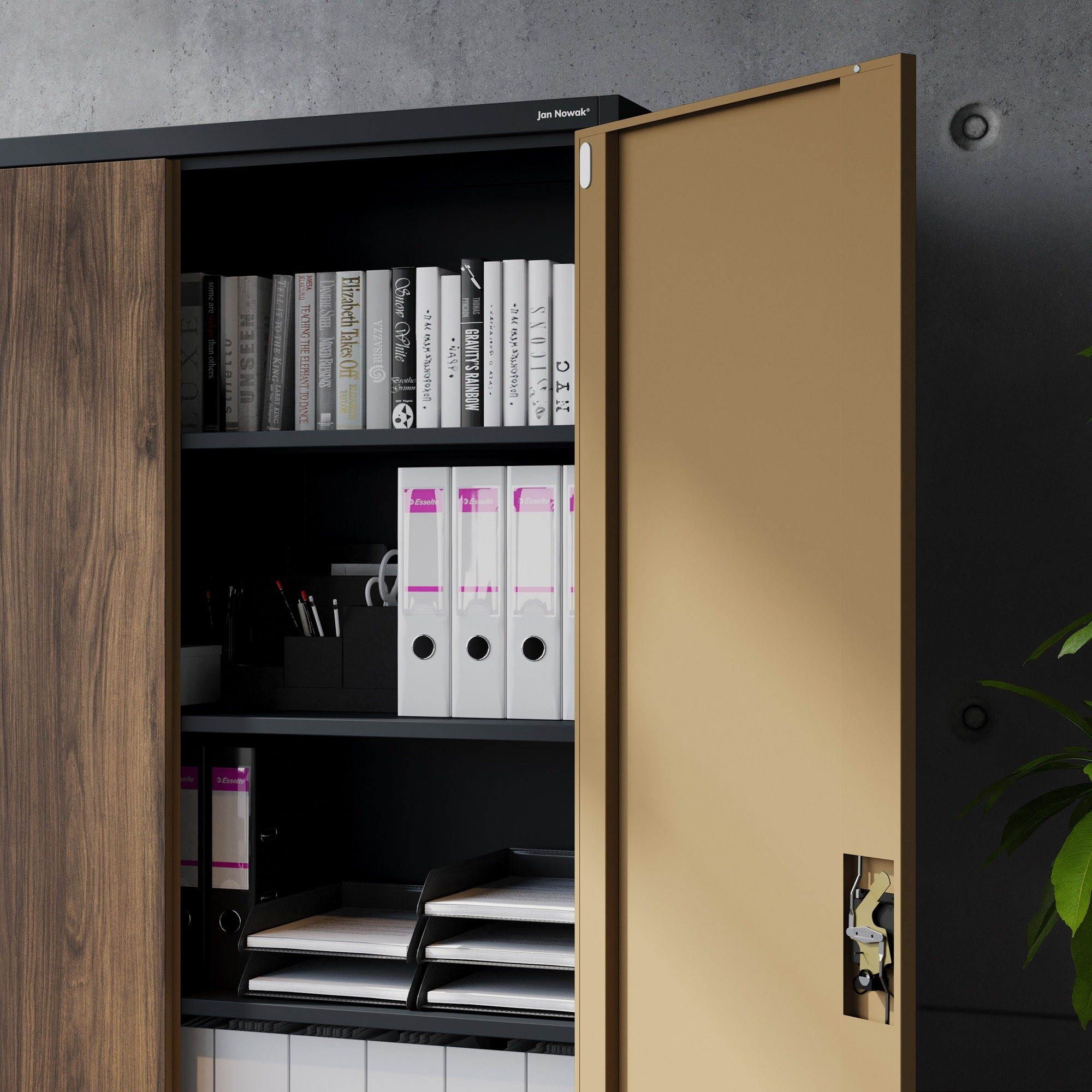 Kovová kancelářská skříň na dokumenty JAN II, Eco Design: antracit/ořech