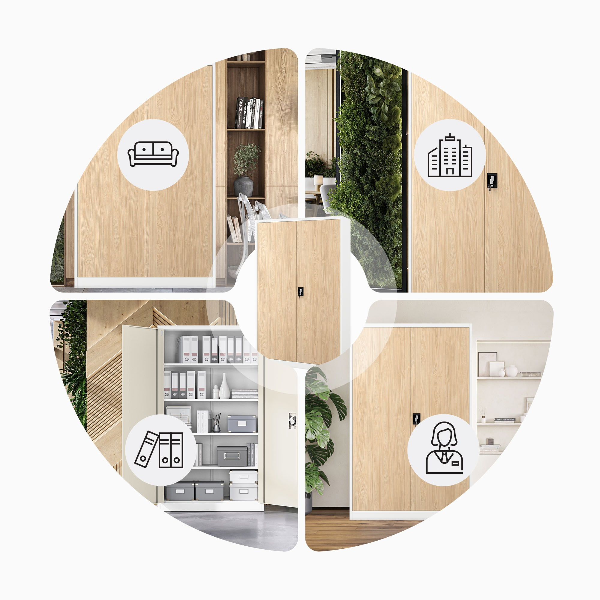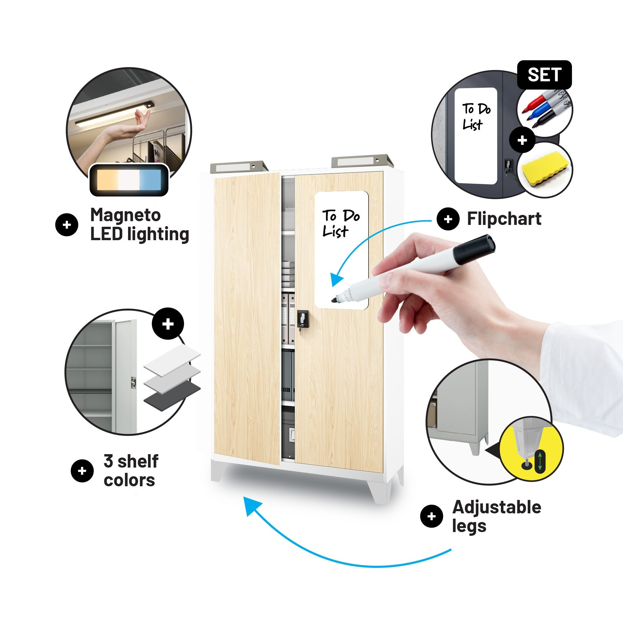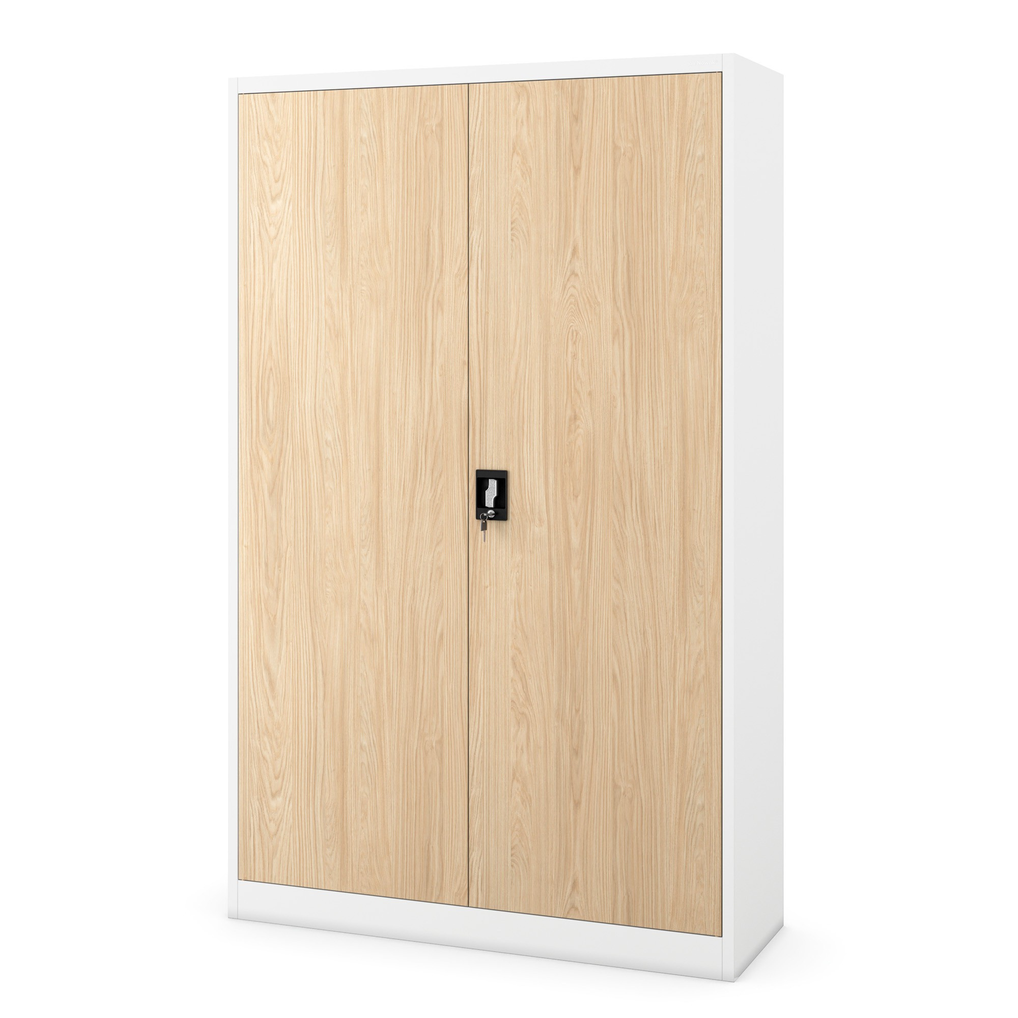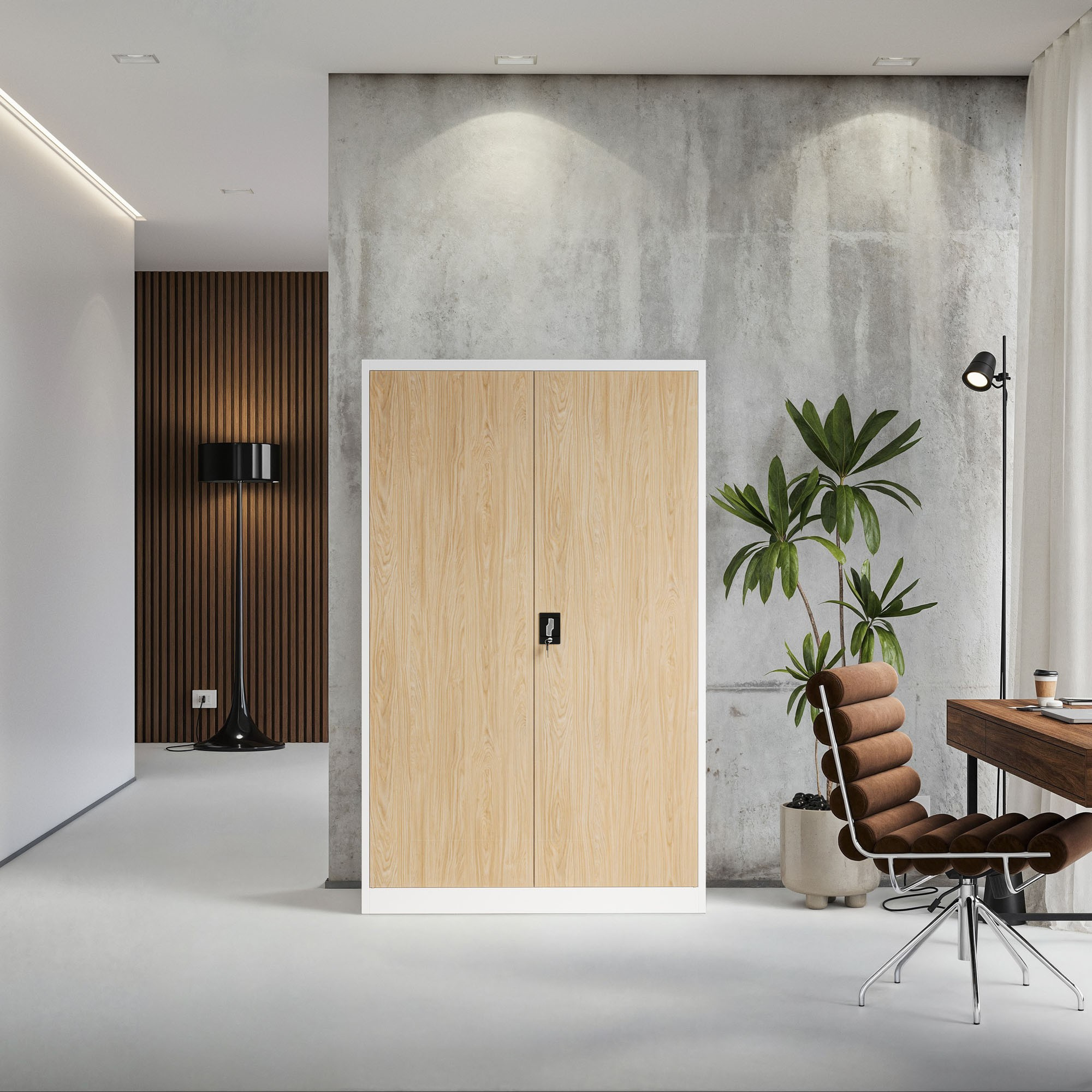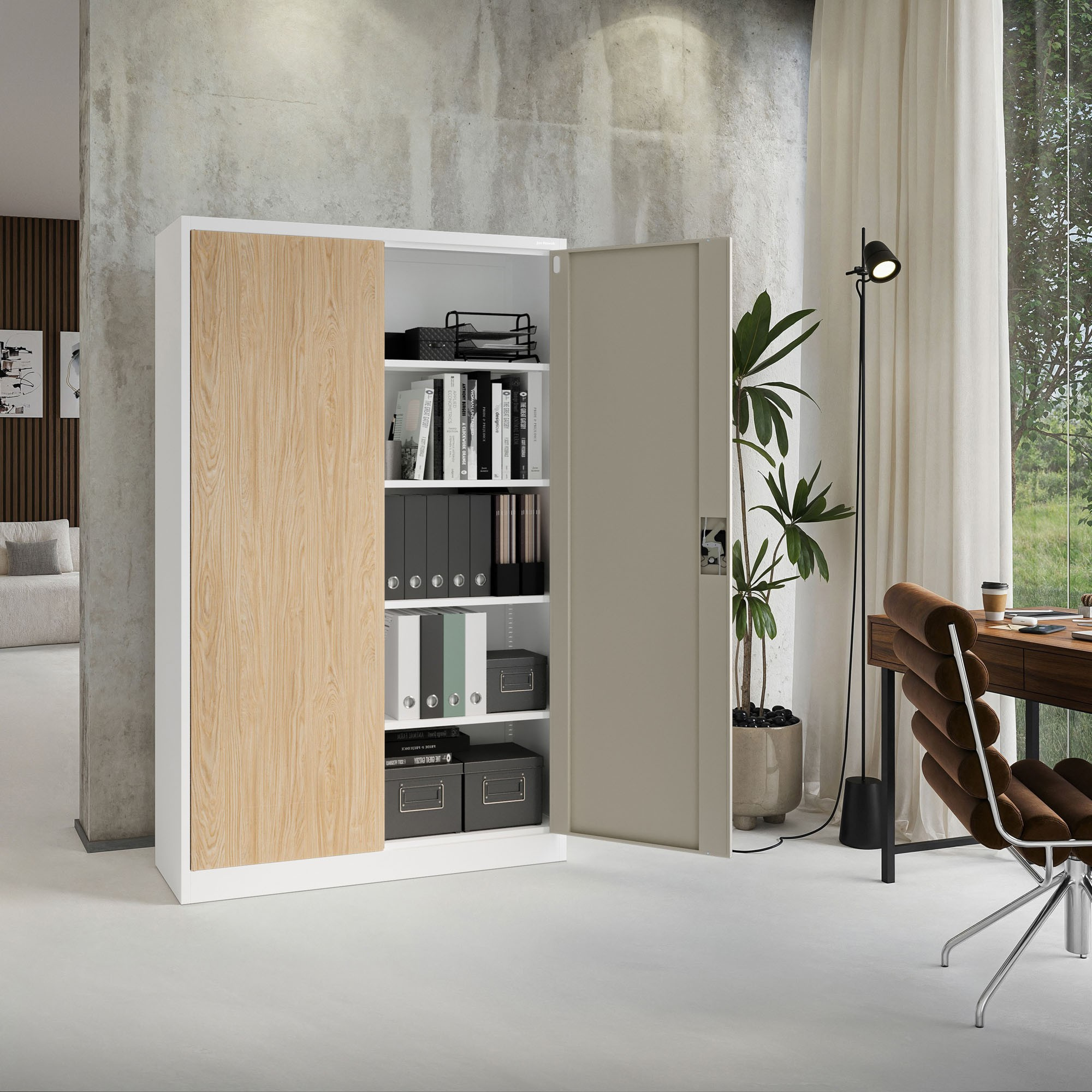 Kancelářská kovová skříň na dokumenty JAN II, Eco Design: bílá/dub sonoma