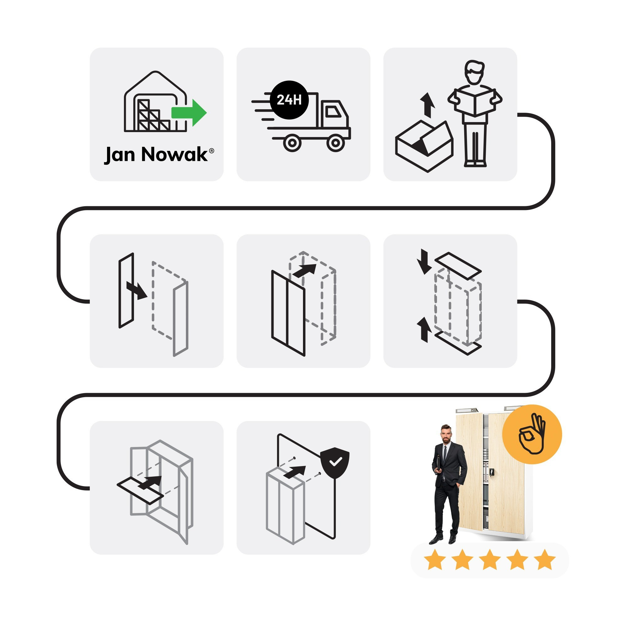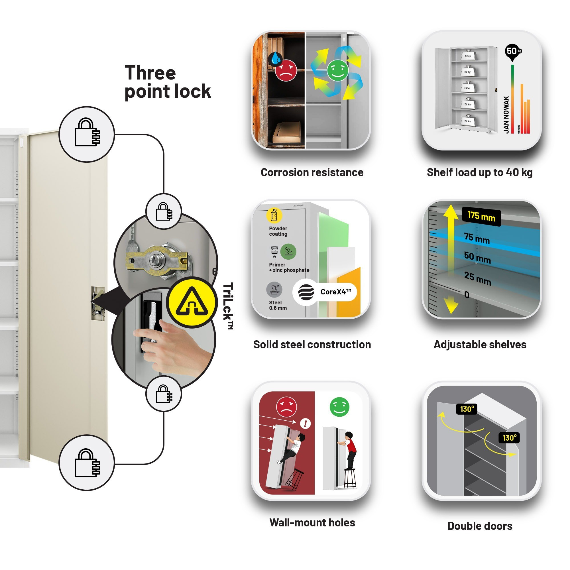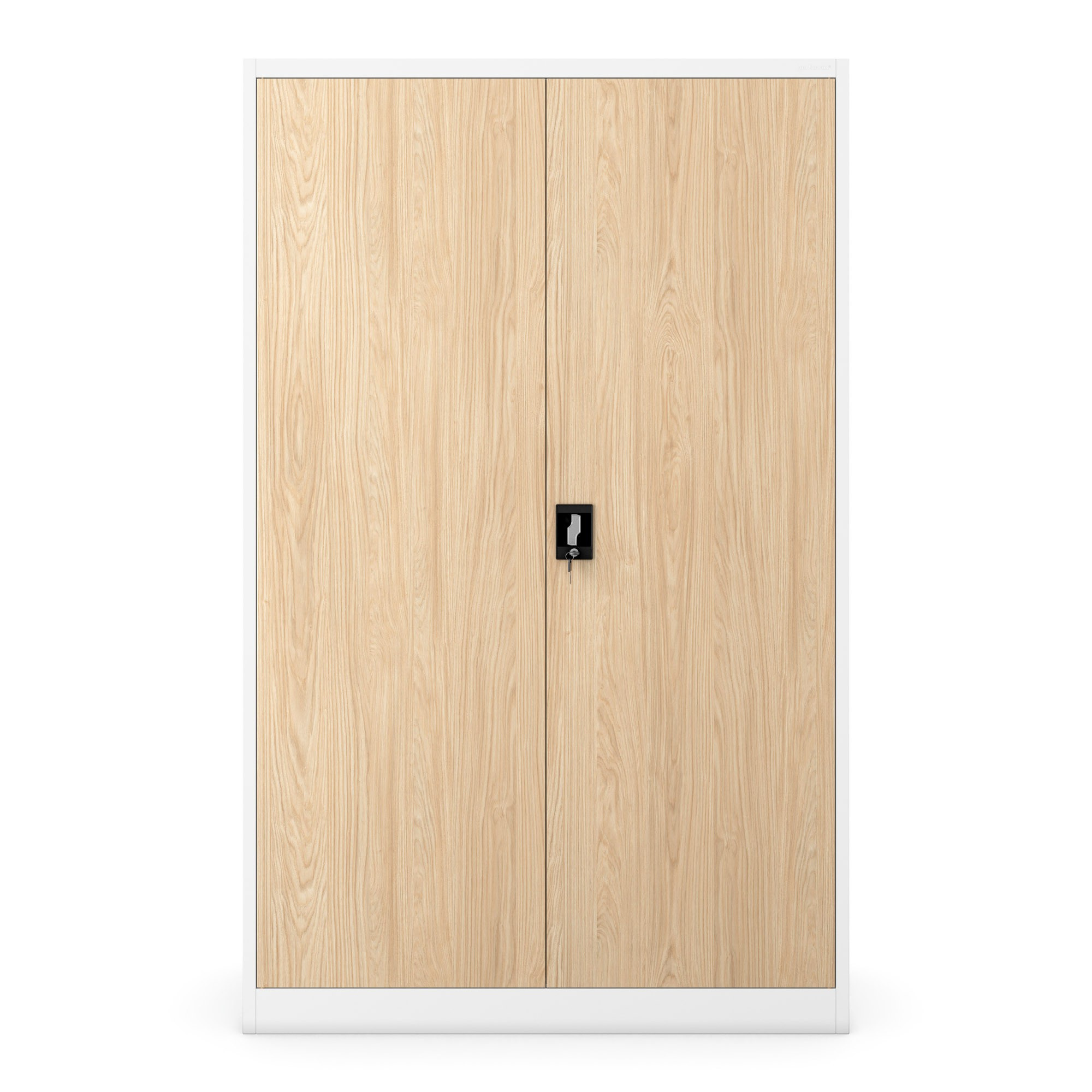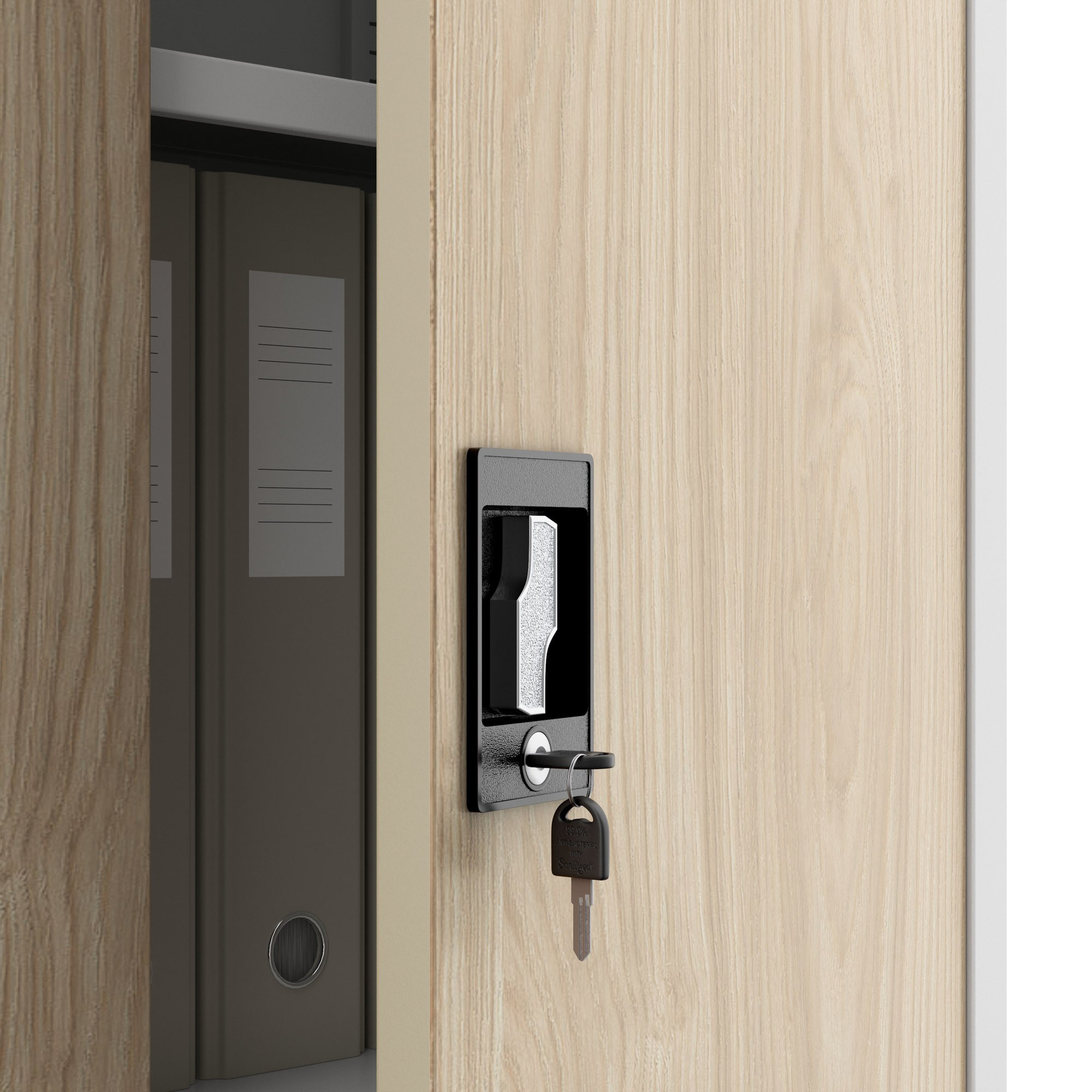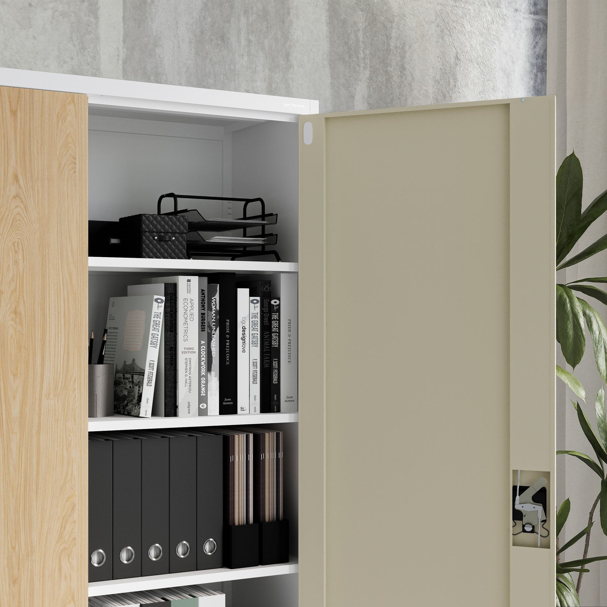 Kancelářská kovová skříň na dokumenty JAN II, Eco Design: bílá/dub sonoma