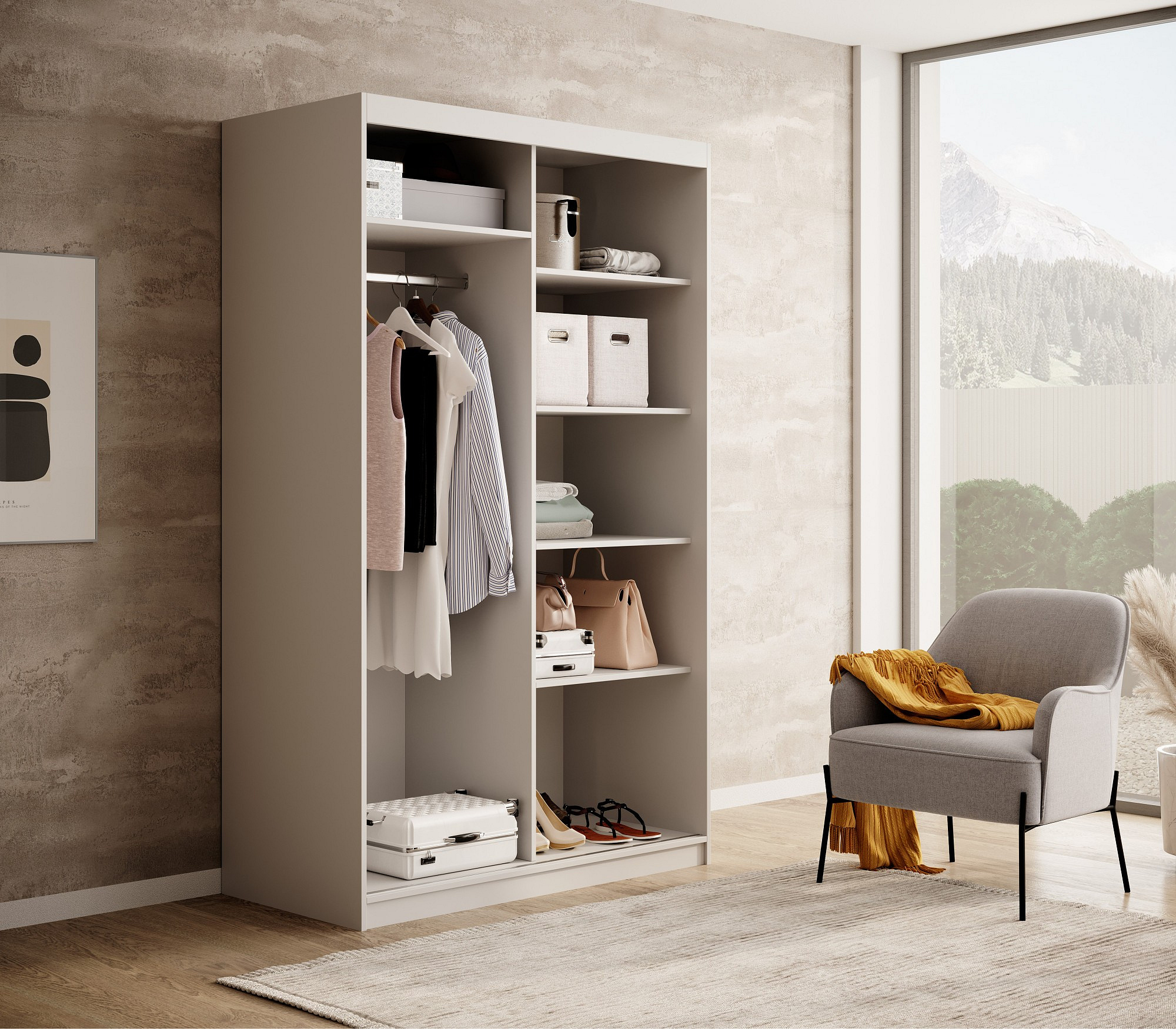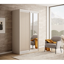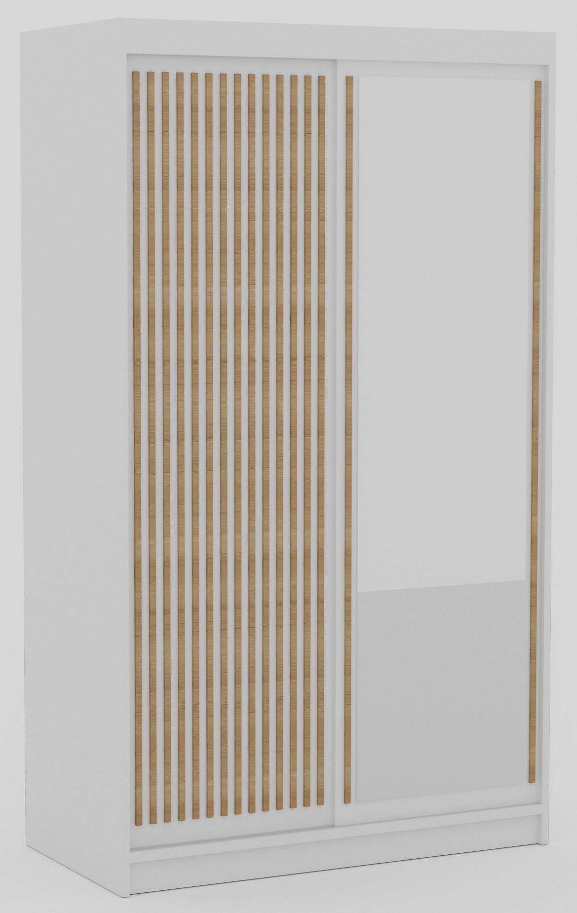 Šatní skříň Delia s posuvnými dveřmi a lamelami v barvách dřeva je stylové a praktické řešení pro ukládání oblečení a dalších předmětů ve vašem domě. Jeho elegantní design v dřevěných barvách dodává interiéru teplo a útulnost, zároveň se hodí k mnoha různým uspořádáním interiéru. Dveře skříně jsou vyrobeny z lamel, což jí dodává lehkost a modernost.