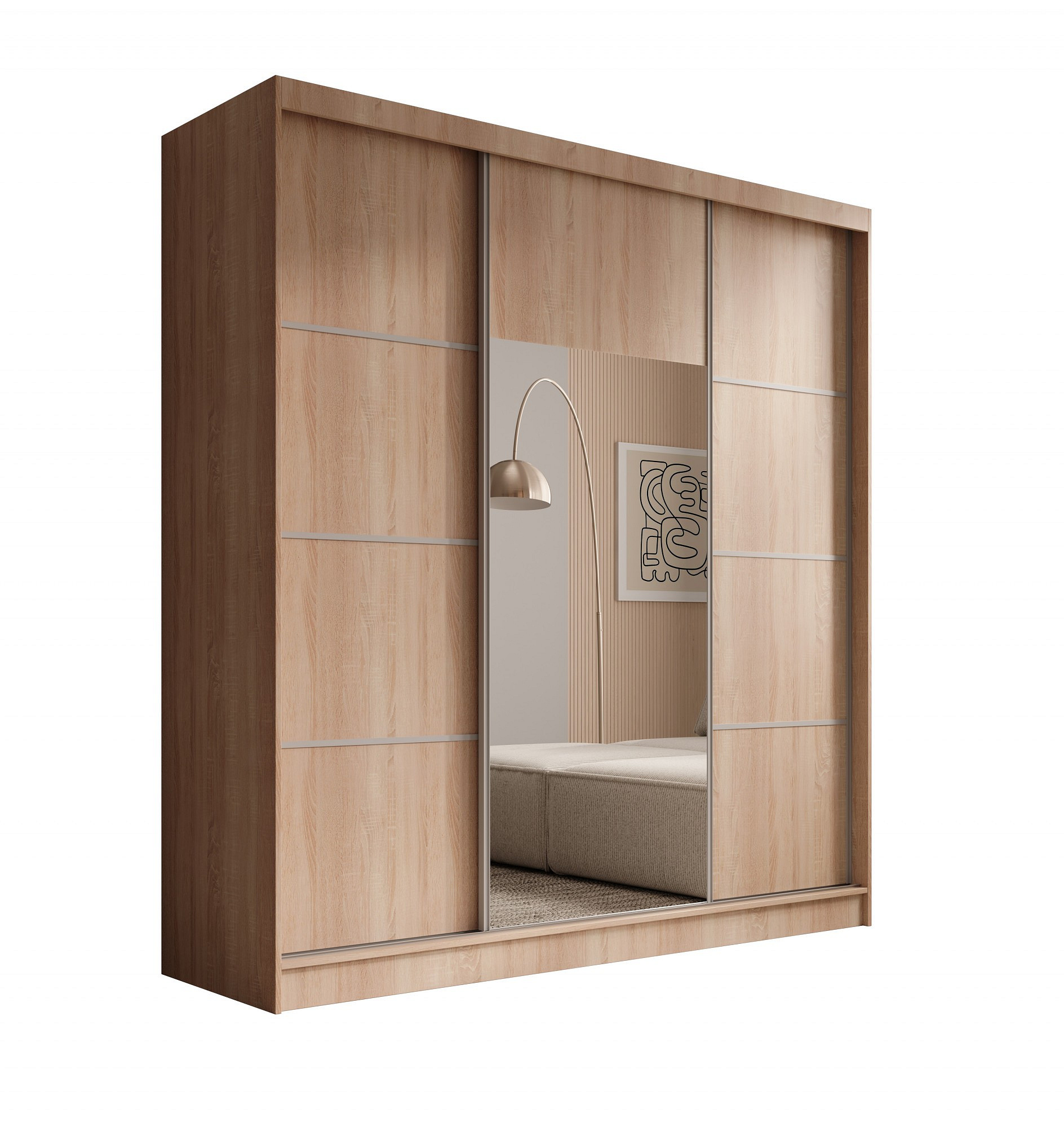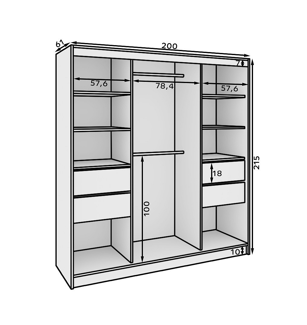 Posuvná skříň Keri je ideálním řešením pro osoby, které si cení praktičnosti a estetiky. Díky své promyšlené konstrukci snadno pojme všechny nezbytné věci, zároveň dodá interiéru moderní charakter. Díky skříni Keri se váš prostor stane více uspořádaným a stylovým. To ideální spojení elegance a funkčnosti v jednom kusu nábytku. Osvědčí se jak v ložnici, předsíni, tak i v šatně. Přidej do svého interiéru skříň Keri a užívej si dokonale využitý prostor!