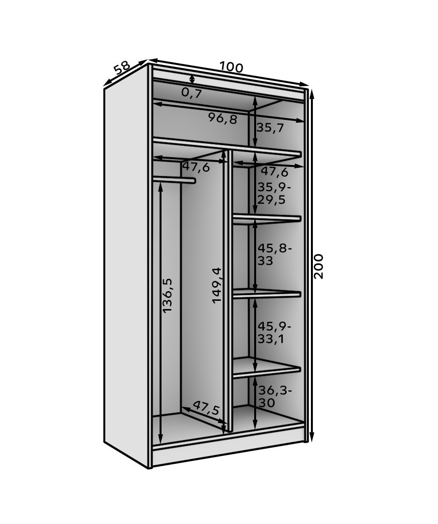 Posuvná skříň Laurencja 100 Bílá+Bílá