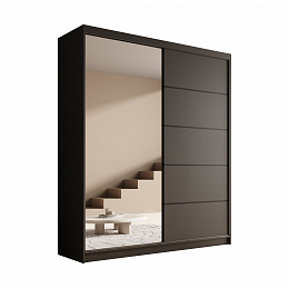 Šatní skříň s posuvnými dveřmi a zrcadlem Nico 180 Černá+Černá