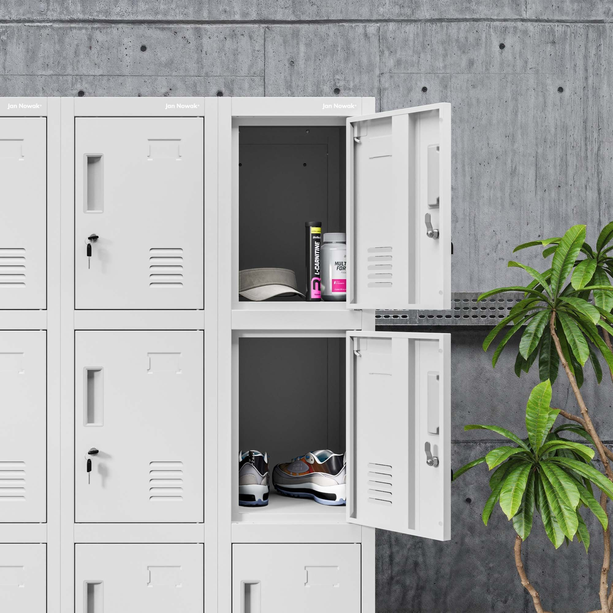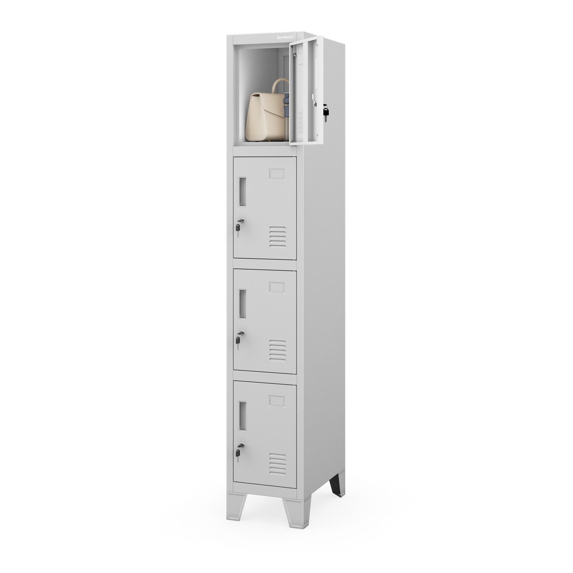 Skříňka je rozdělena na čtyři samostatné přihrádky, z nichž každá je vybavena vlastním zámkem. To vám umožní bezpečně uložit osobní věci, oblečení, tašky, knihy a další předměty, aniž byste se museli obávat o jejich ztrátu nebo poškození. Ke každé skříňce obdržíte dva klíče, což je ideální pro sdílení s kolegou nebo pro případ ztráty jednoho z klíčů.