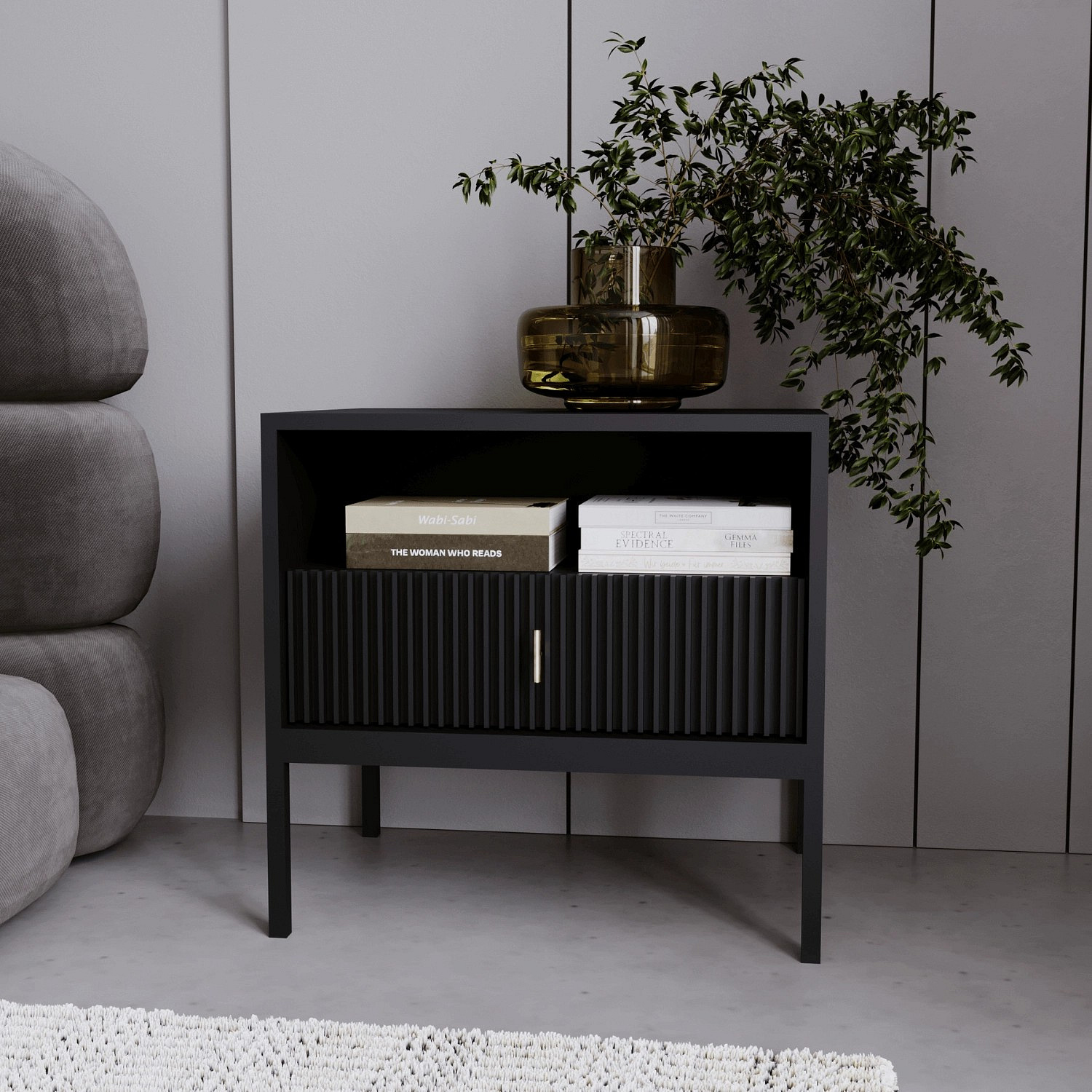 Noční stolek MARCOS Rýhovaný Černý