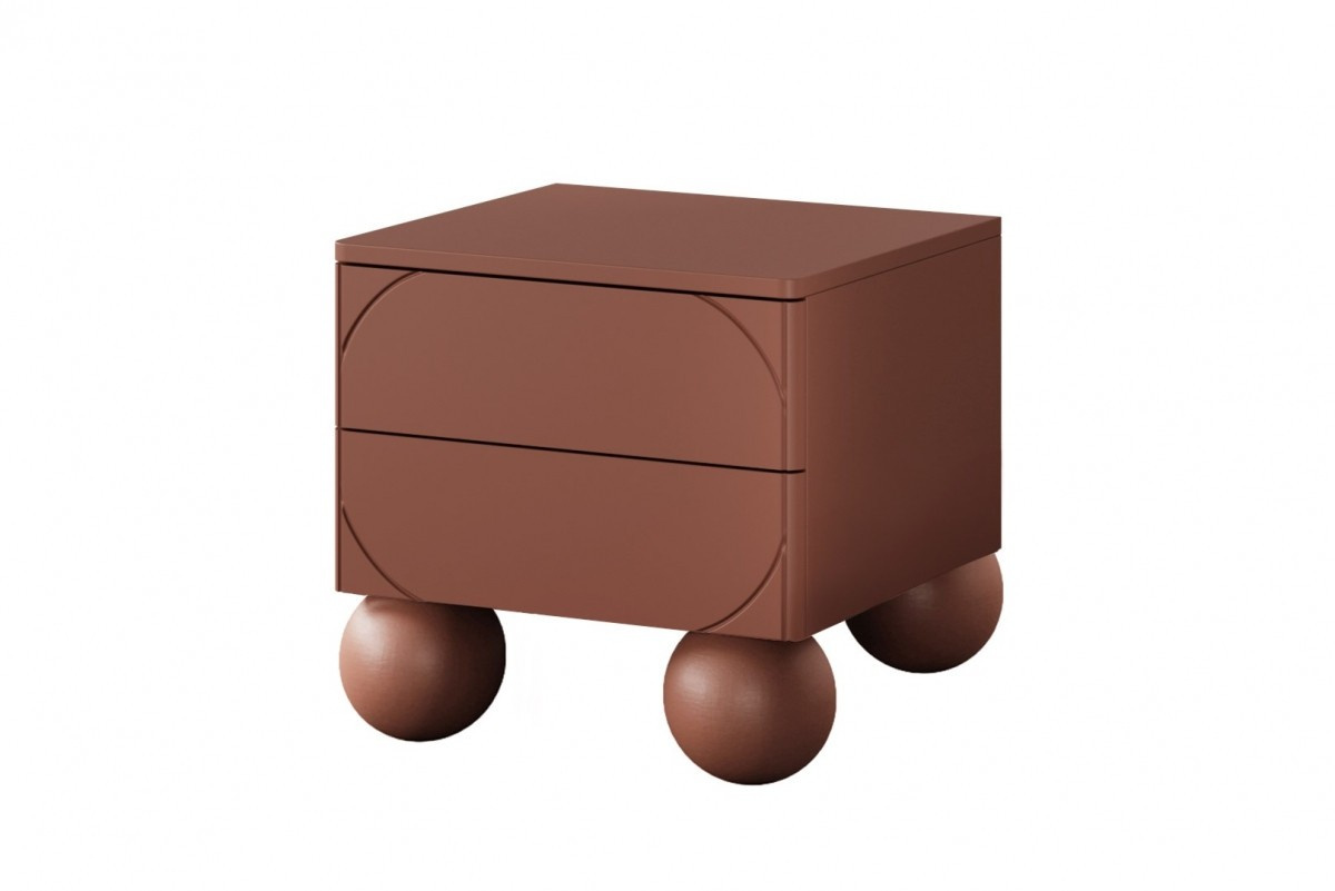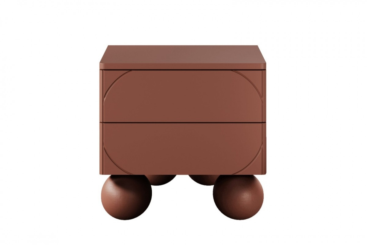Noční stolek Sonatia II se dvěma zásuvkami na kulových nožkách 45 cm - bordó, Šířka: 45, Výška: 47, Hloubka: 45, Výška nožek: 12, Montáž: