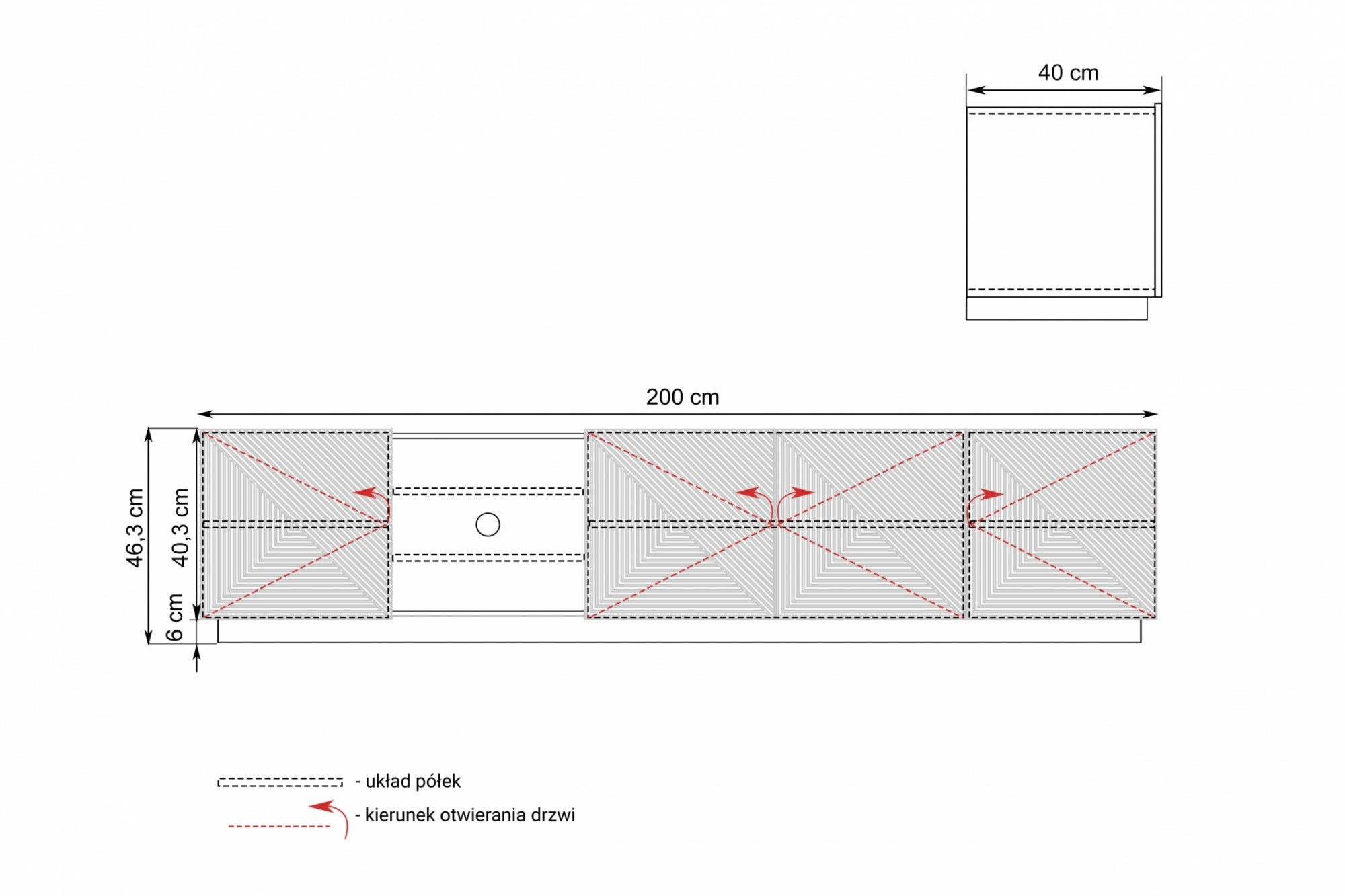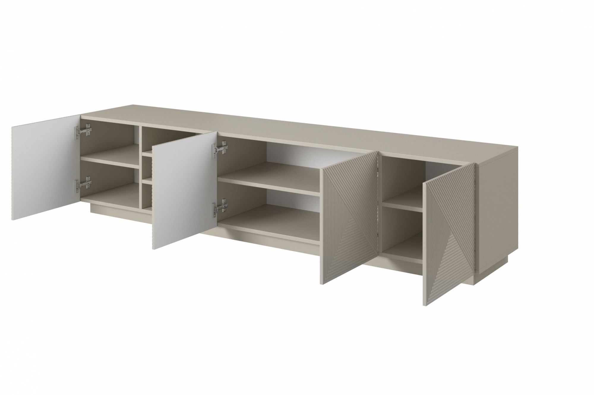 RTV skříňka Asha s rýhovaným čelem a výklenkem 200 cm - kašmír, Šířka: 200, Výška: 46, Hloubka: 40, Výška nožek: , Hloubka desky: , Montáž: